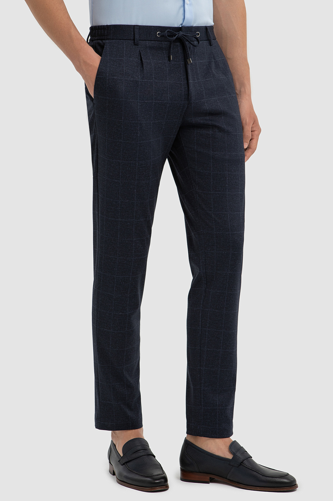 Брюки в клетку на кулиске, цвет синий, цена 6 990 руб., код 267794 - купить в Воронеже в интернет-магазине KANZLER