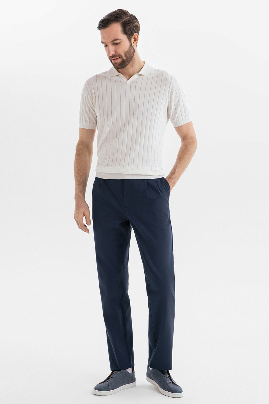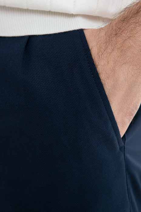 Брюки KANZLER глубокого синего цвета из мягкой хлопковой ткани с диагональным рубчиком — универсальная базовая модель, которая подойдет для офиса с нестрогим дресс-кодом и отдыха в городе. Секрет аккуратной посадки — в защипах спереди и свободном крое, который не стесняет движений и подходит для любого типа телосложения. Натуральный гипоаллергенный хлопок защищает тело от перегрева в теплые дни. Небольшая добавка спандекса служит для прочности и поддержания формы ткани. Параметры модели: рост 187, 99-81-97 Размер на модели: 50