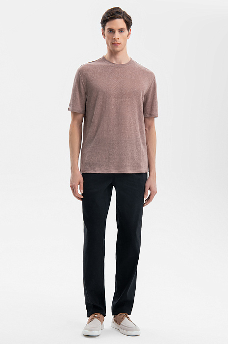 Для создания черных брюк KANZLER из лимитированной коллекции выбрали премиальную ткань от итальянской мануфактуры Lanificio TG di Fabio. Материал плотного плетения с благородной матовой фактурой объединил лучшие свойства волокон льна и шерсти. Лен обеспечивает воздухопроницаемость и идеальную терморегуляцию, а упругие волокна шерсти дарят мягкость и поддерживают форму. Небольшое добавление эластана служит для идеальной посадки и прочности. Классический крой переосмыслен для современного мужчины. Защипы на талии привносят нотку расслабленности в лаконичный силуэт. Это универсальный элемент гардероба, уместный и в деловой, и в неформальной обстановке. Параметры модели: рост 189, 91-78-95 Размер на модели: 50