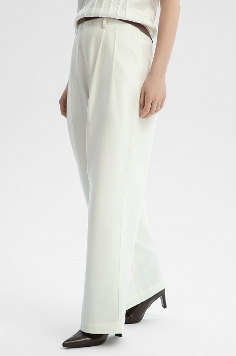 Брюки палаццо из тенсела и хлопка, цвет белый, цена 9 990 руб. - купить в интернет-магазине KANZLER