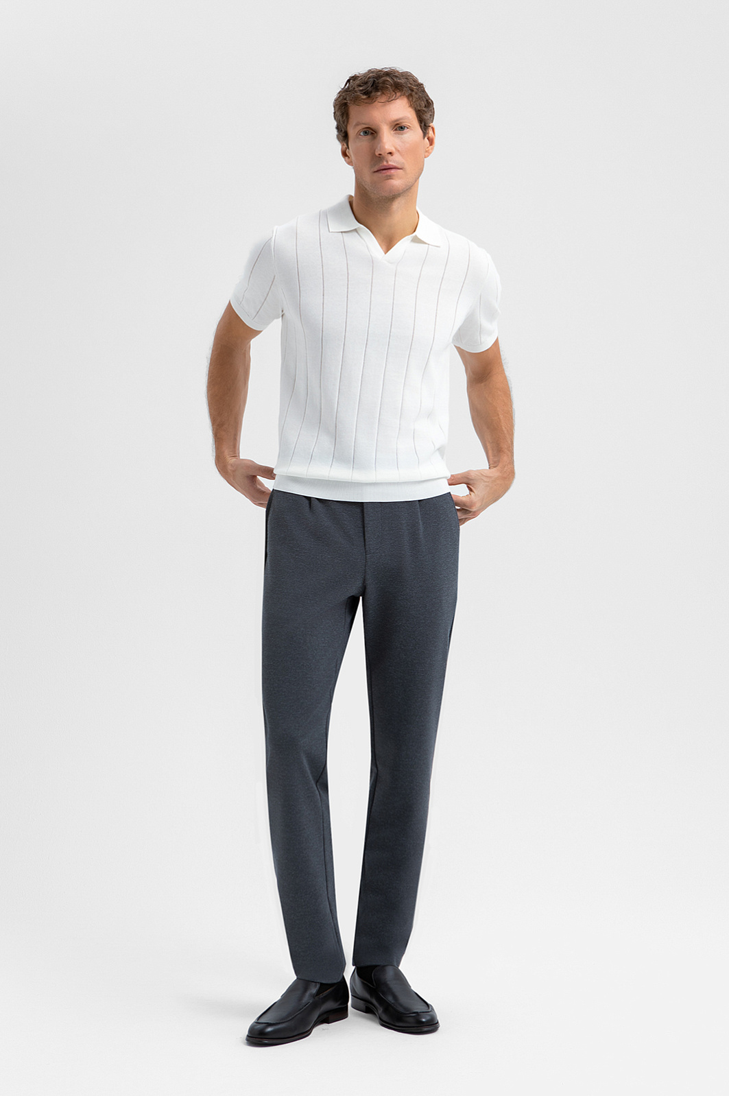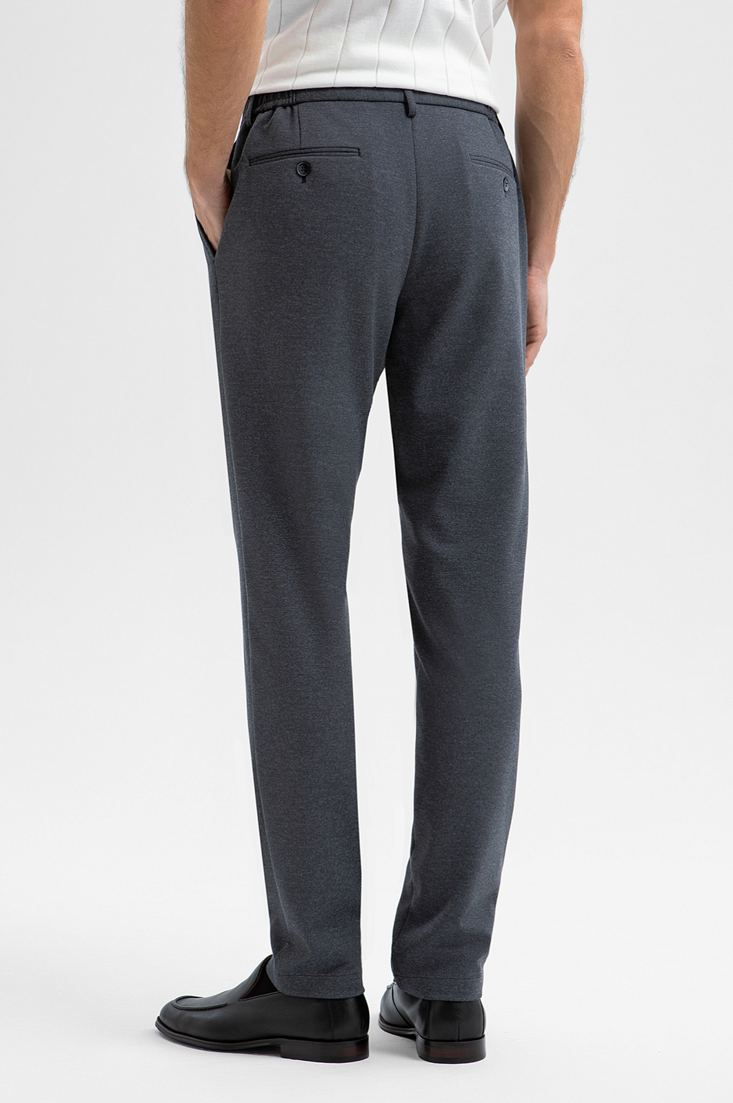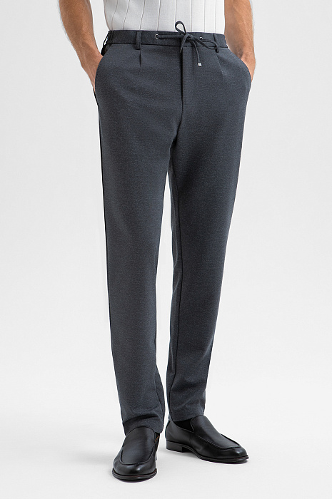 Серые слегка зауженные брюки KANZLER на кулиске — воплощение современного комфорта и функциональности. Они подходят как для офиса с нестрогим дресс-кодом, так и для городских выходов и путешествий. Позаимствованные у спортивной одежды кулиска и вшитая в пояс резинка обеспечивают мягкую удобную посадку без давления. Небольшие защипы спереди делают брюки универсальными для любого типа комплекции. Инновационная смесовая ткань на основе полиэстера с добавлением вискозы, нейлона и спандекса отличается мягкостью, эластичностью и устойчивостью к сминанию, а подкладка с хлопком служит для комфорта и защиты от износа.