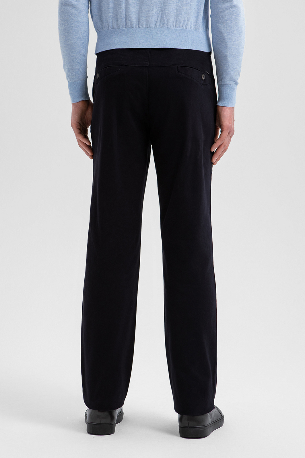 Повседневные брюки KANZLER из хлопка — современная альтернатива классике, адресованная городскому жителю. Универсальный тёмно-синий цвет легко сочетается с рубашками, трикотажем и пиджаками. Прямой крой обеспечивает непринужденную посадку и формирует выверенный собранный силуэт. Аккуратные боковые карманы не нарушают лаконичность дизайна. Подкладка из прочной смесовой ткани защищает основной материал от износа и обеспечивает лёгкое надевание. Материал — натуральный гипоаллергенный хлопок с добавлением эластана (3%), который хорошо держит форму, поддерживает оптимальную температуру и позволяет свободно двигаться.