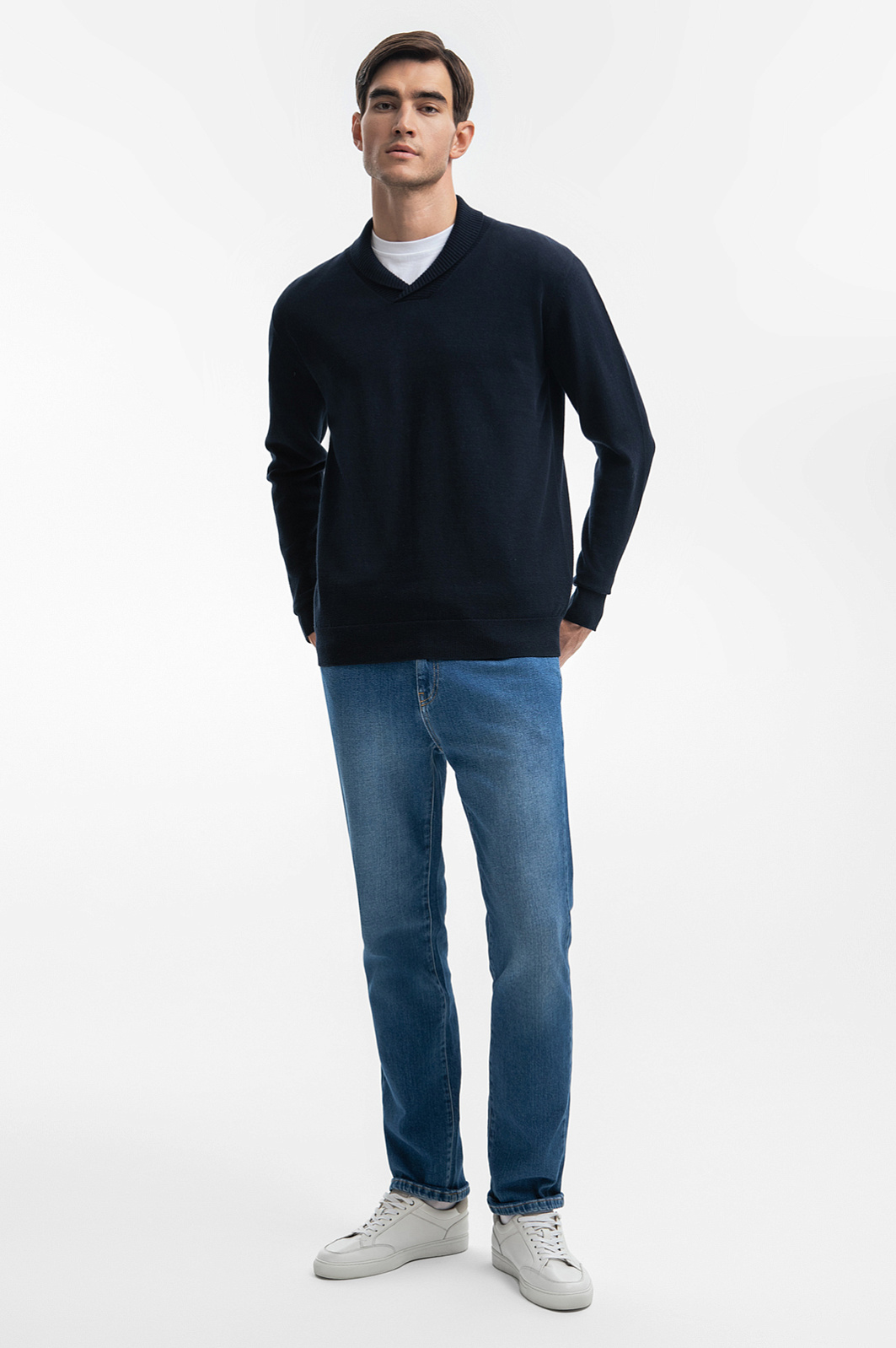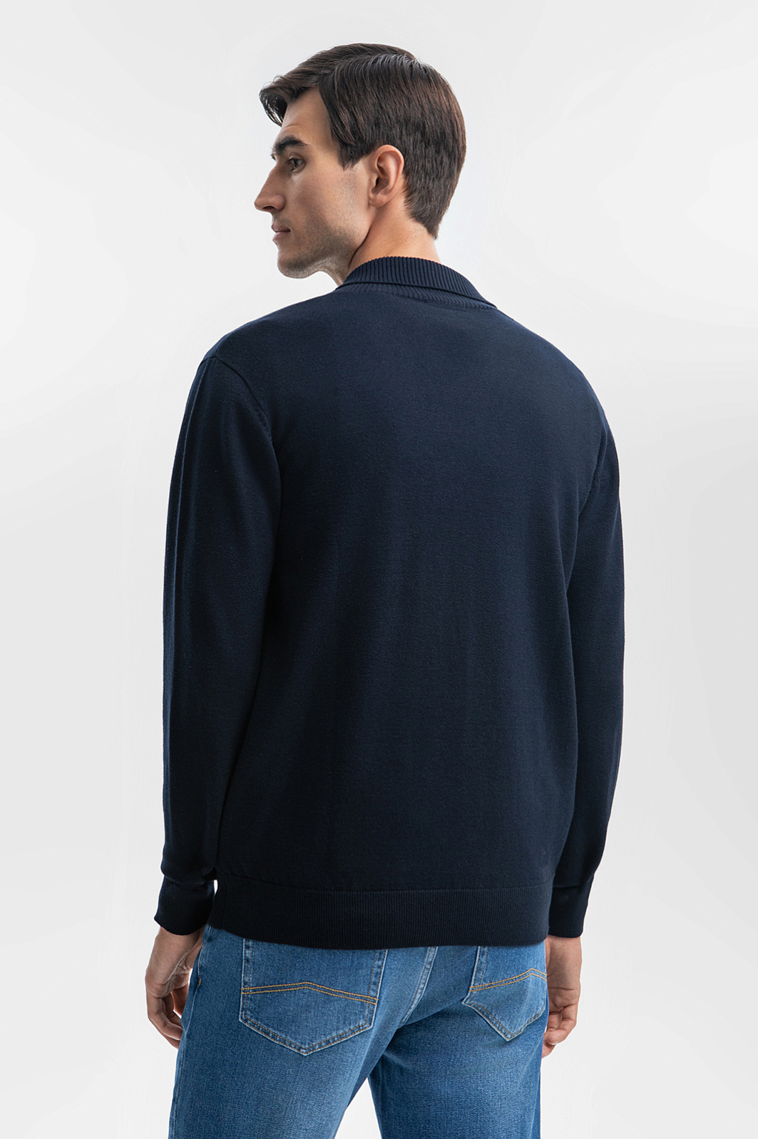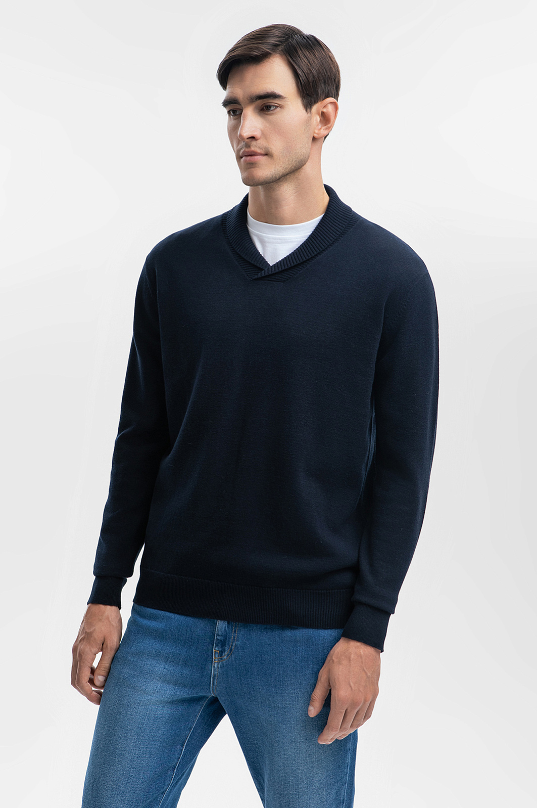 Базовый мужской джемпер KANZLER — образец комфорта и элегантности, который станет незаменимой частью гардероба в любое время года. Премиальный состав ткани, включающий 95% хлопка и 5% кашемира, обеспечивает идеальный баланс между мягкостью и долговечностью. Хлопок делает джемпер дышащим и приятным к телу, а кашемир придает изделию роскошную текстуру. Глубокий Синий оттенок — самый практичный цвет этого сезона, который легко вписывается в различные образы, от кежуал до умный кежуал. Этот цвет подчеркивает сдержанный стиль и лаконичность модели, и позволяет легко сочетать её с классическими брюками, джинсами или брюками. Оригинальный шалевый воротник добавляет джемперу стильный и современный акцент, придавая образу индивидуальности. Джемпер такого кроя легко адаптируется под разные стили, оставаясь одновременно универсальным и выразительным элементом вашего гардероба. Параметры модели: рост 192, 101-76-97 Размер на модели: M