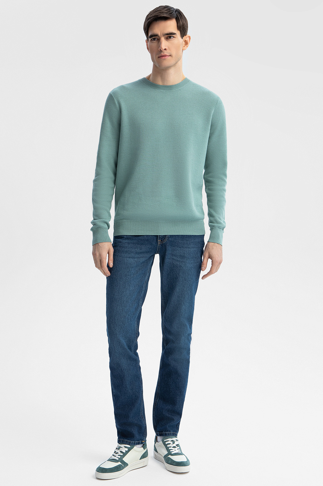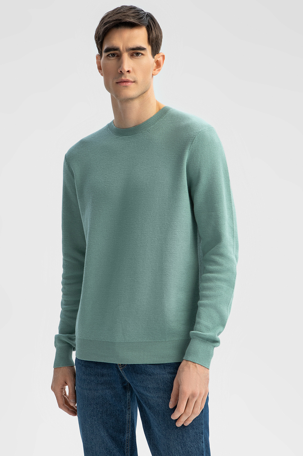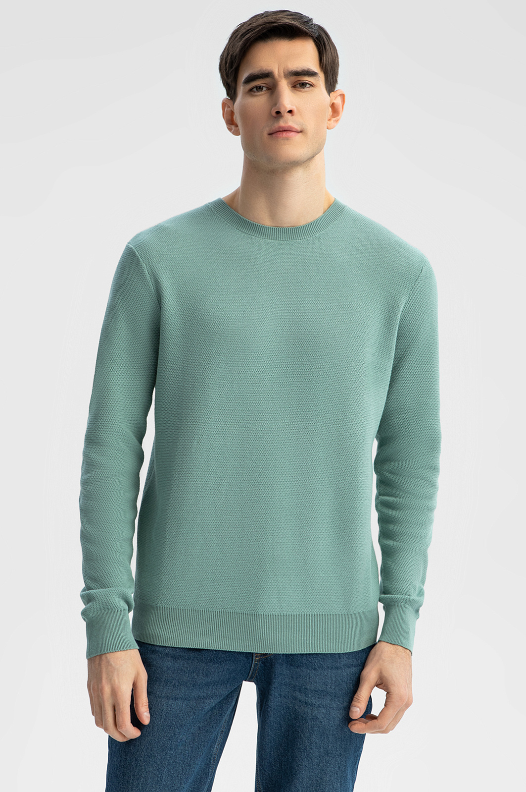Светло-зеленый цвет джемпера KANZLER символизирует свежесть и гармонию и идеально сочетается с высоким качеством материала. Хлопок Пима, известный своей исключительной мягкостью, дарит невероятное ощущение комфорта, которое сопровождает вас в течение всего дня. Длинные волокна обеспечивают прочность и сохранение формы, делая джемпер неподвластным времени. Цвет не теряет своей яркости благодаря превосходной способности хлопка Пима удерживать краску - все, чтобы вы наслаждались премиальным качеством в течение долгого времени. Джемпер станет универсальным выбором для любого сезона. Параметры модели: рост 192, 101-76-97 Размер на модели: M