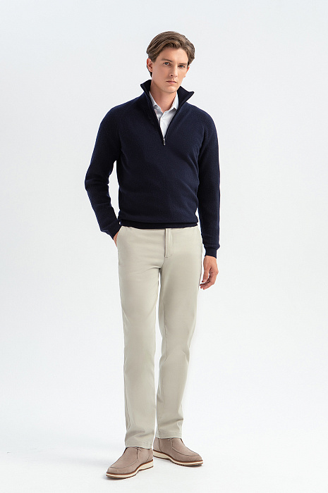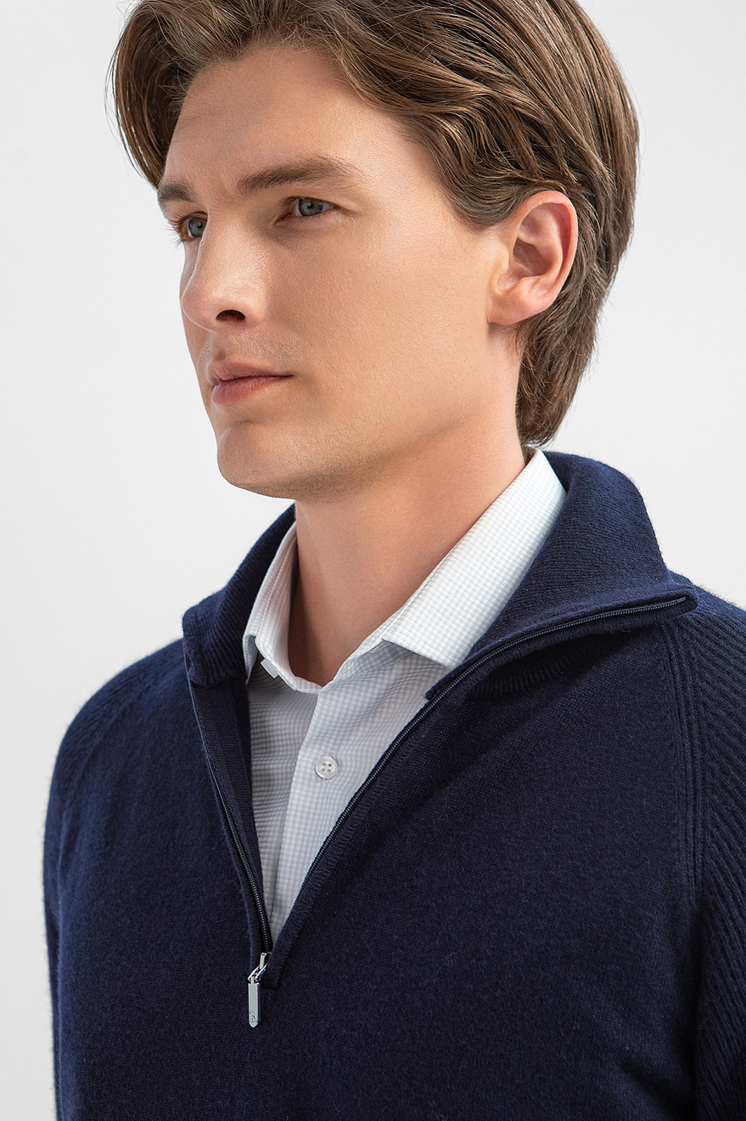 Кардиган KANZLER на молнии из шерсти и кашемира — универсальная вещь для стильного повседневного гардероба. Модель легко комбинируется с рубашками, футболками или водолазками, добавляя в образ комфорт и сдержанную роскошь. Гладкая основная часть и рукава в крупный рубчик создают игру фактур. Высокий воротник на молнии защищает от ветра и придаёт образу спортивный характер. Полуприлегающий силуэт подчёркивает фигуру, не стесняя движений. Благородная, приятная к телу ткань из шерсти с кашемиром — гармоничное сочетание натуральных волокон, которое обеспечивает бережное сохранение естественного тепла. Параметры модели: рост 191, 97-77-99 Размер на модели: M