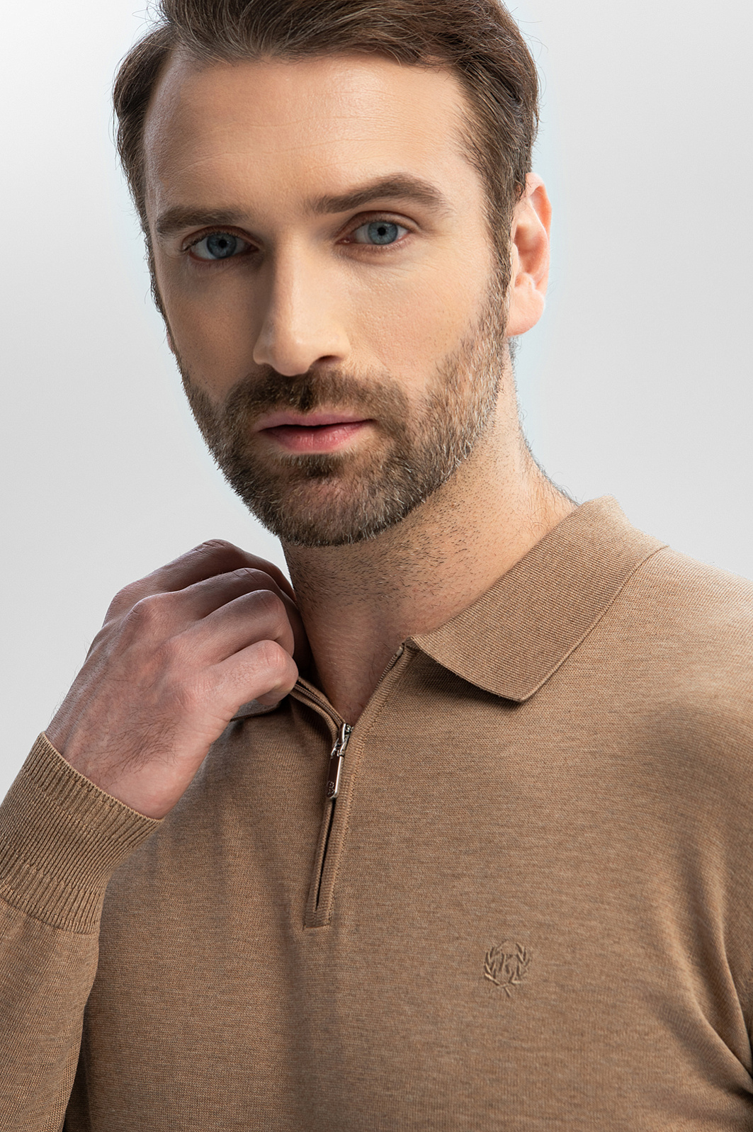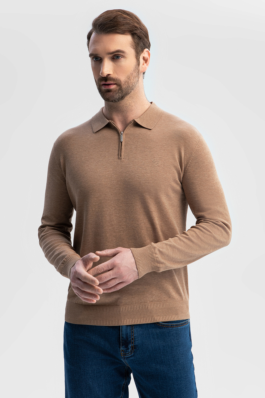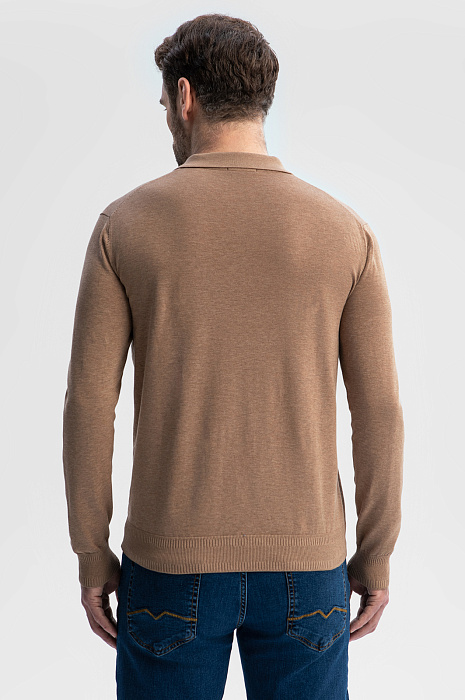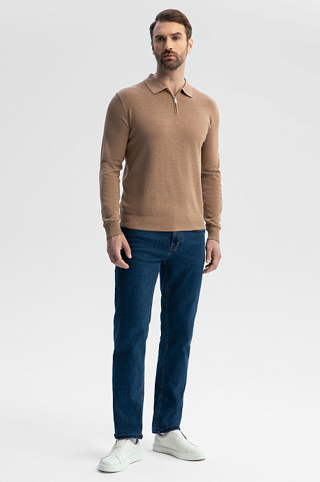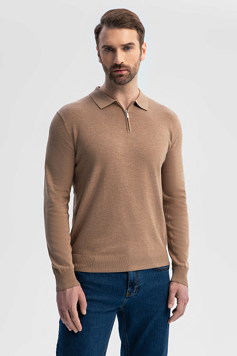Поло с длинным рукавом из хлопка, шелка и льна создано для тех, кто ценит комфорт и эстетику натуральных материалов. Шелковые волокна в составе придают ткани легкое сияние и нежную фактуру, хлопок обеспечивает воздухопроницаемость, а лен обладает терморегулирующими свойствами – материал охлаждает кожу в жаркий день и сохраняет комфортную температуру в прохладную погоду. Теплый бежевый оттенок универсален и легко встроится в любой гардероб, а минималистичный дизайн с застежкой-молнией на вороте создает утонченный образ. Принадлежность бренду обозначена небольшой вышивкой с логотипом на груди. Параметры модели: рост 189, 102-80-99 Размер на модели: M