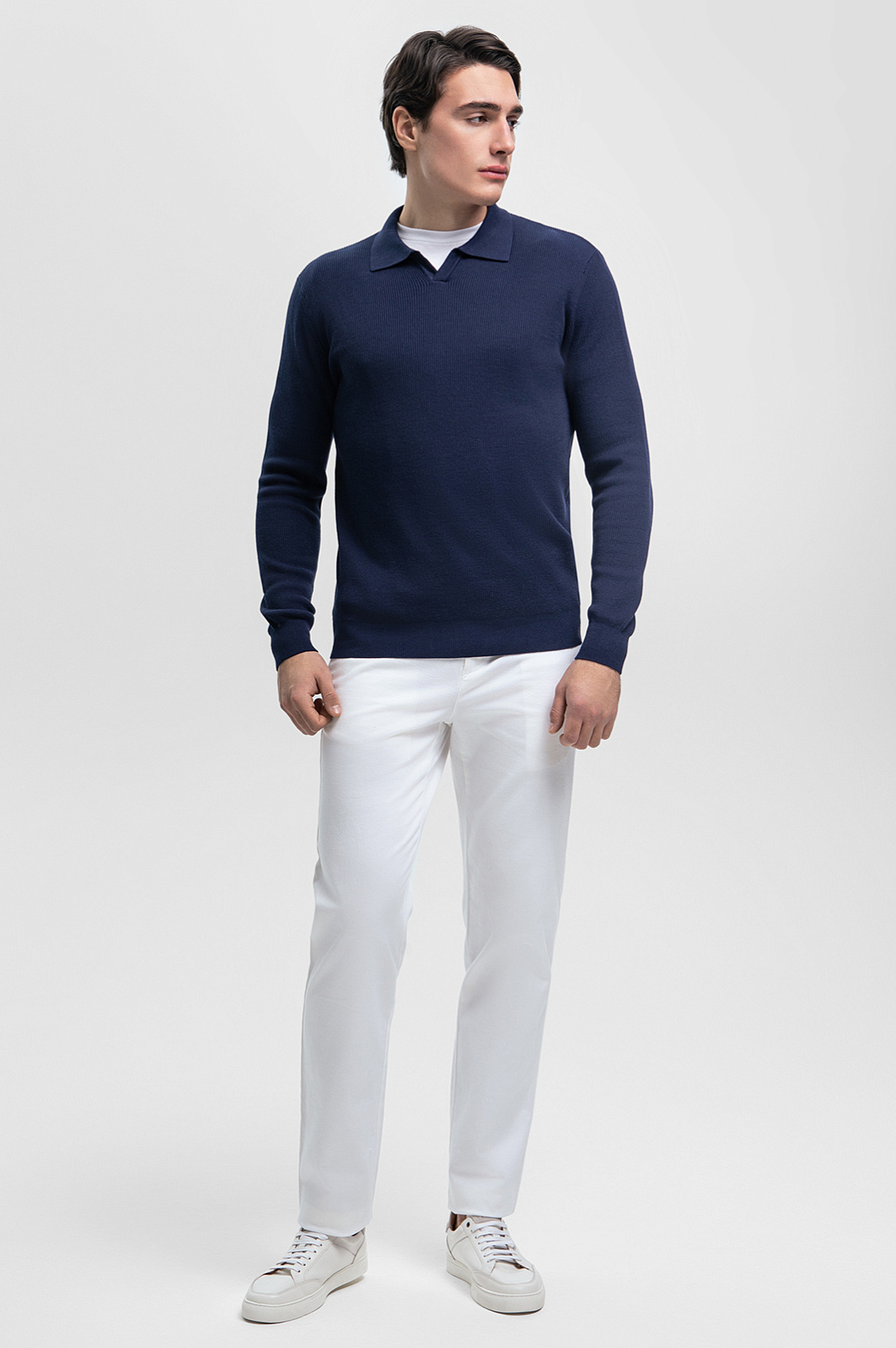 Лаконичный крой, длинные рукава и воротник-поло подчеркивают элегантный стиль джемпера KANZLER. Изготовленный из 100% высококачественного хлопка, он обладает мягкой текстурой и обеспечивает идеальную воздухопроницаемость. Джемпер станет универсальной основой для создания множества неформальных или деловых образов. Насыщенный темно-синий оттенок добавляет модели глубины и благородства, гармонично сочетаясь с другими элементами гардероба. Поло станет стильным дополнением гардероба современного мужчины, стремящегося к балансу между классикой и комфортом. Параметры модели: рост 190, 103-83-99 Размер на модели: M