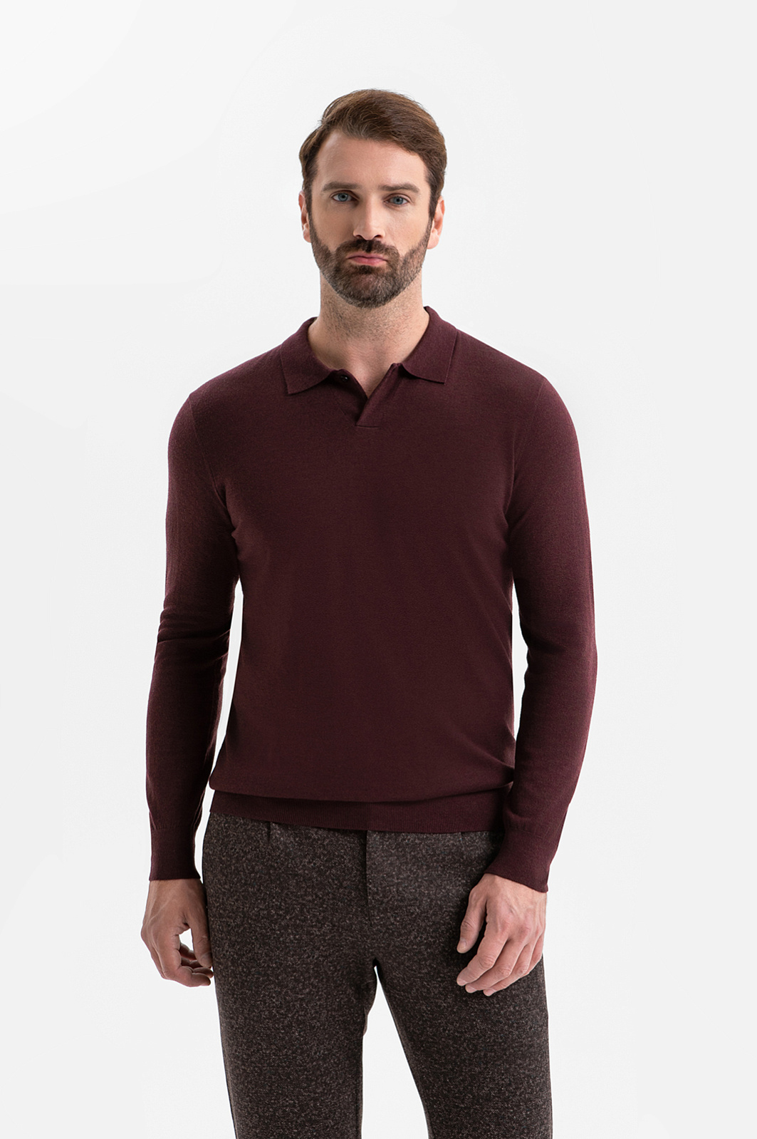 Джемпер поло из шерсти и кашемира, цвет бордовый, цена 7 990 руб., код 270040 - купить в Воронеже в интернет-магазине KANZLER