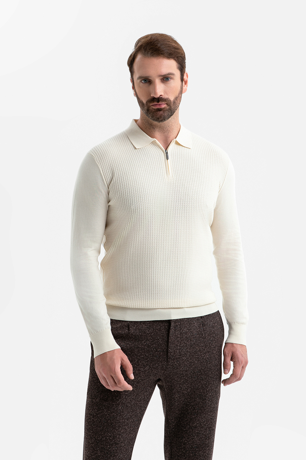 Джемпер поло из хлопка Пима, цвет бежевый, цена 8 990 руб., код 270234 - купить в Воронеже в интернет-магазине KANZLER