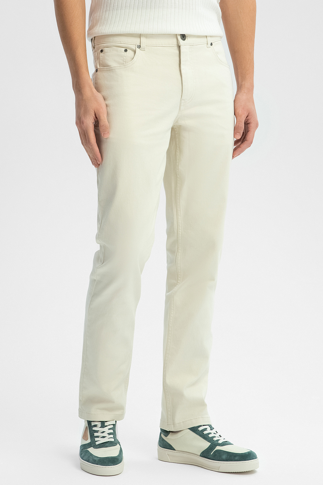 Светло-бежевые джинсы KANZLER из чистого хлопка вдохновляют на спонтанный побег из города, участие в морской регате или приятную прогулку. Чтобы выглядеть роскошно, достаточно надеть с ними футболку или поло с укороченным рукавом и солнцезащитные очки. Удобный универсальный прямой крой подходит для фигуры любого типа. Джинсы из чистого хлопка можно носить так часто, как этого хочется. Деним из гипоаллергенных волокон хлопка хорошо адаптируется к телу. Это дышащий материал, который поддерживает приятную температуру, не допуская перегревания. Параметры модели: рост 191, 97-77-99 Размер на модели: 34