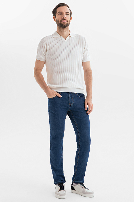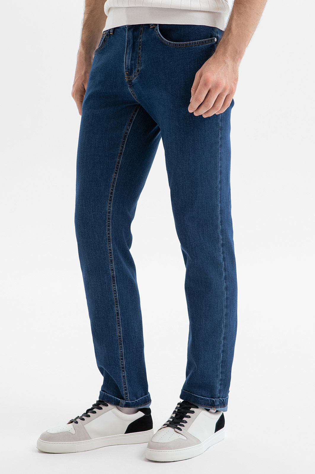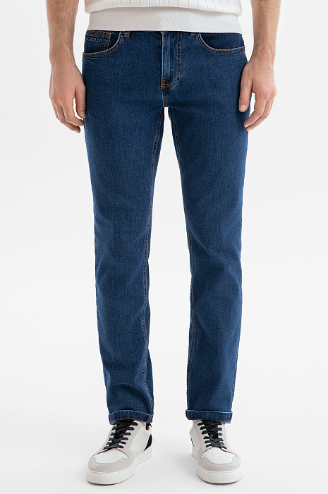 Синие джинсы KANZLER из тонкого хлопкового денима — идеальная вещь, чтобы насладиться теплым сезоном. Удобная базовая модель подойдет для офиса с нестрогим дресс-кодом, поездок и путешествий. Дизайн следует классическим канонам и сохраняет традиционные детали — 5 карманов и оранжевую отстрочку. Универсальный прямой крой обеспечивает хорошую посадку и свободу движений. Тонкая натуральная ткань мягко облегает тело. Она создана из легкого дышащего гипоаллергенного хлопка (98%) с добавкой эластана — для прочности и адаптации к индивидуальным особенностям фигуры. Параметры модели: рост 187, 99-81-97 Размер на модели: 34