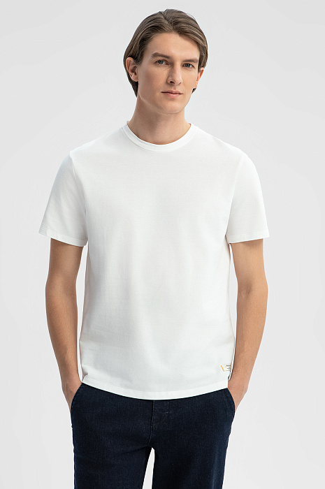 Молочная хлопковая футболка, цвет молочный, цена 4 990 руб., код 269028 - купить в Воронеже в интернет-магазине KANZLER