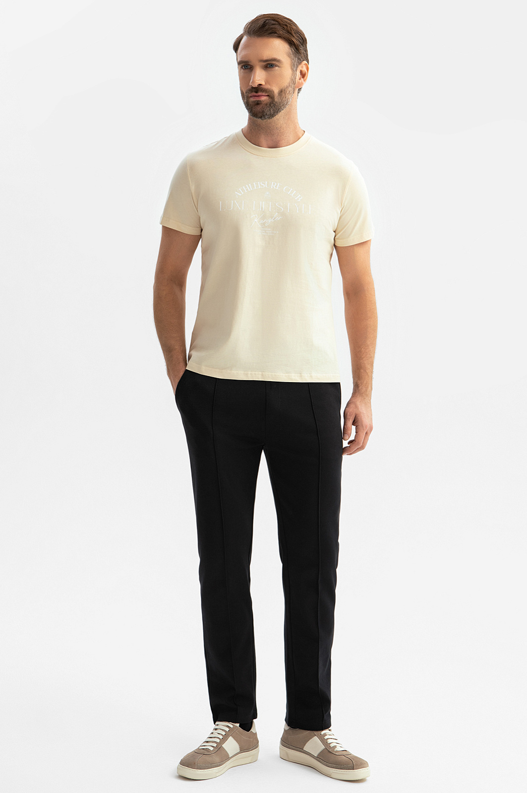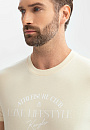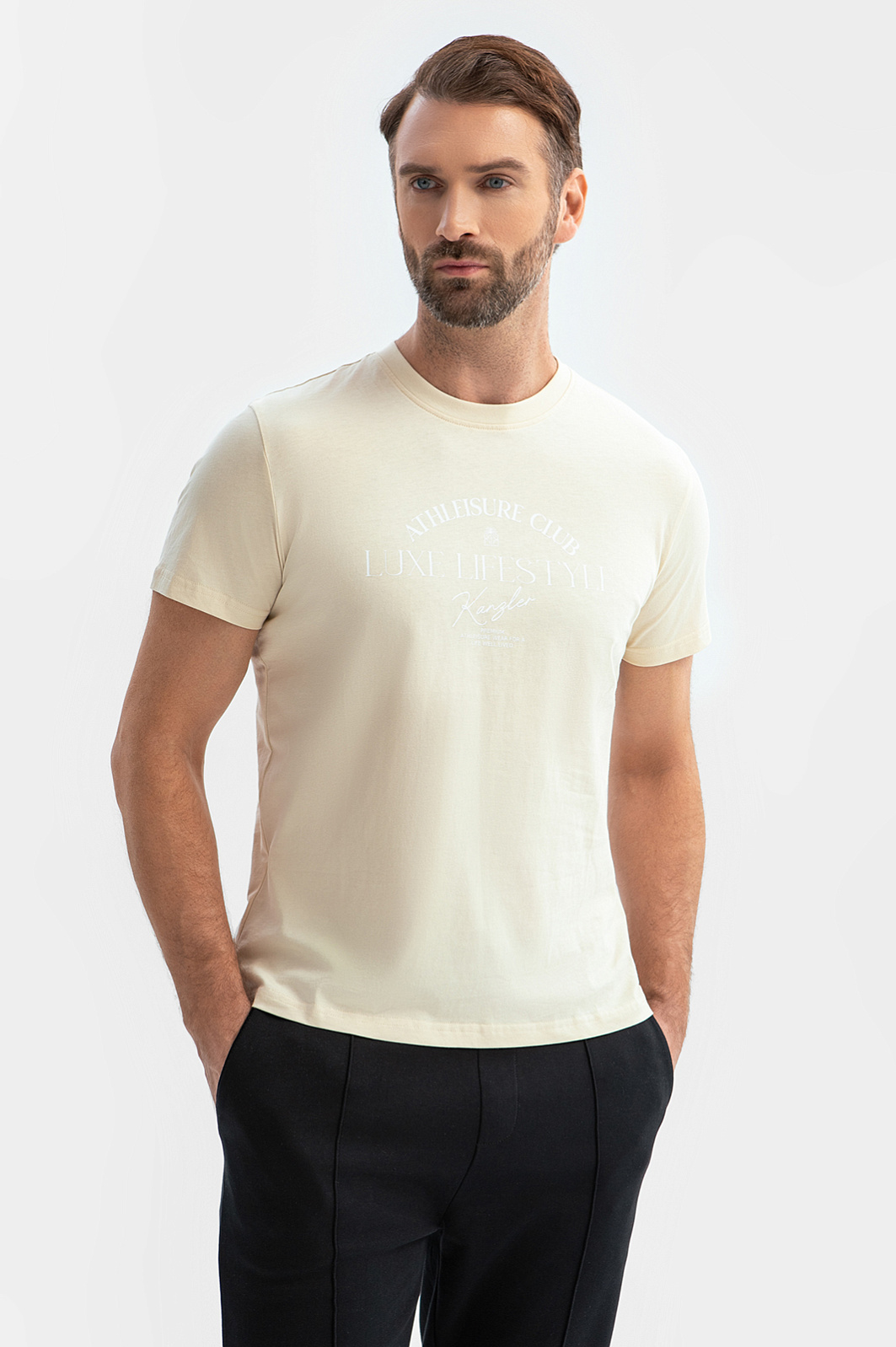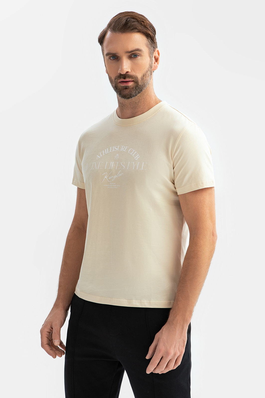 Футболка KANZLER нежно-бежевого оттенка из чистого хлопка с круглым вырезом украсит образ выходного дня. Это идеальная одежда, чтобы сочетать приятное с полезным — расслабленный отдых и физическую активность. Модель украшена надписью и логотипом. Слегка облегающий крой подчеркнет спортивную подтянутую фигуру. Мягкий натуральный трикотаж приятно носить весь день. Легкий воздушный 100-процентный гипоаллергенный хлопок создает ощущение нежного прикосновения и никогда не раздражает кожу. Параметры модели: рост 189, 102-80-99 Размер на модели: M