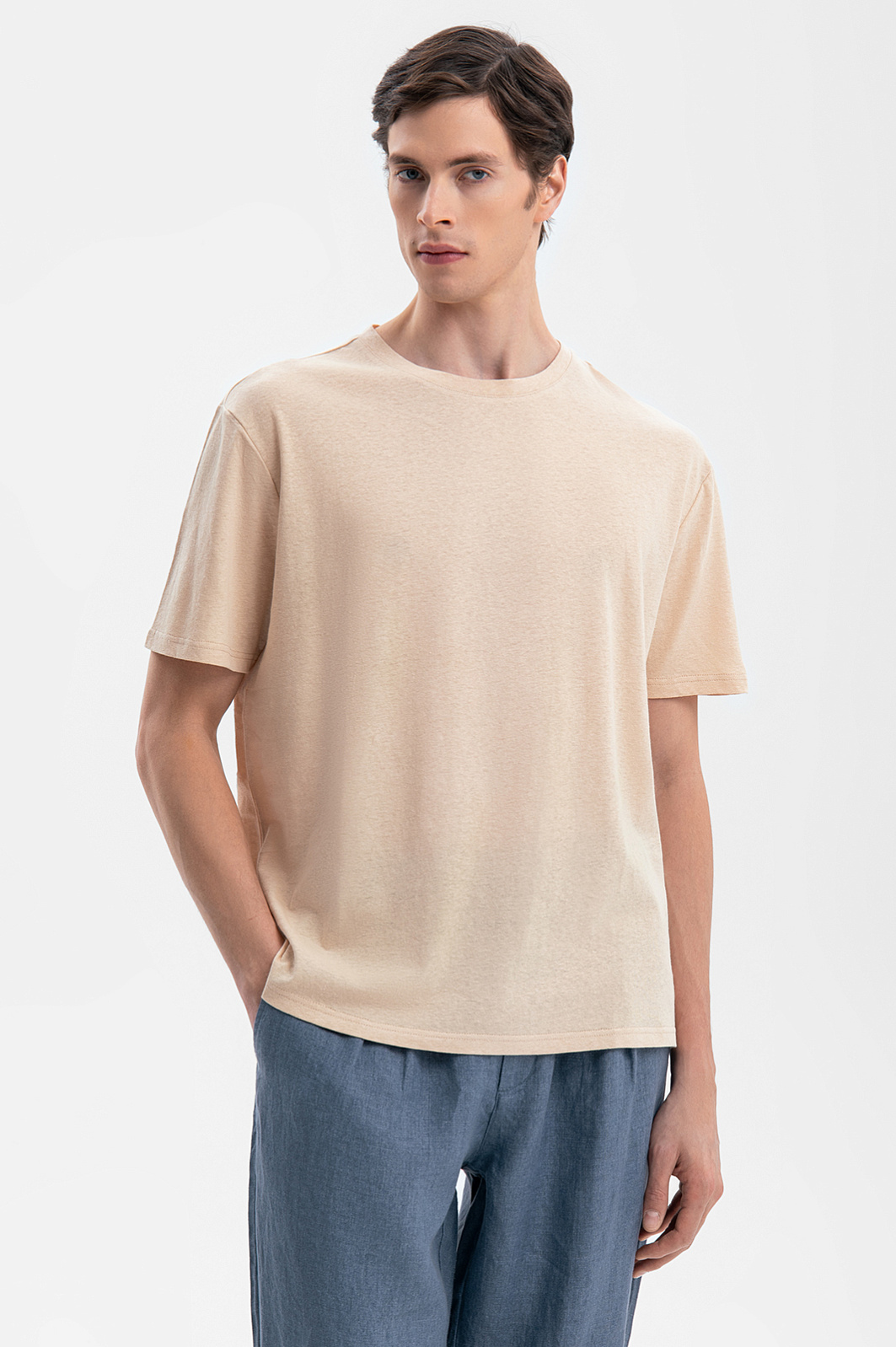 Бежевая футболка изо льна и хлопка в Воронеже