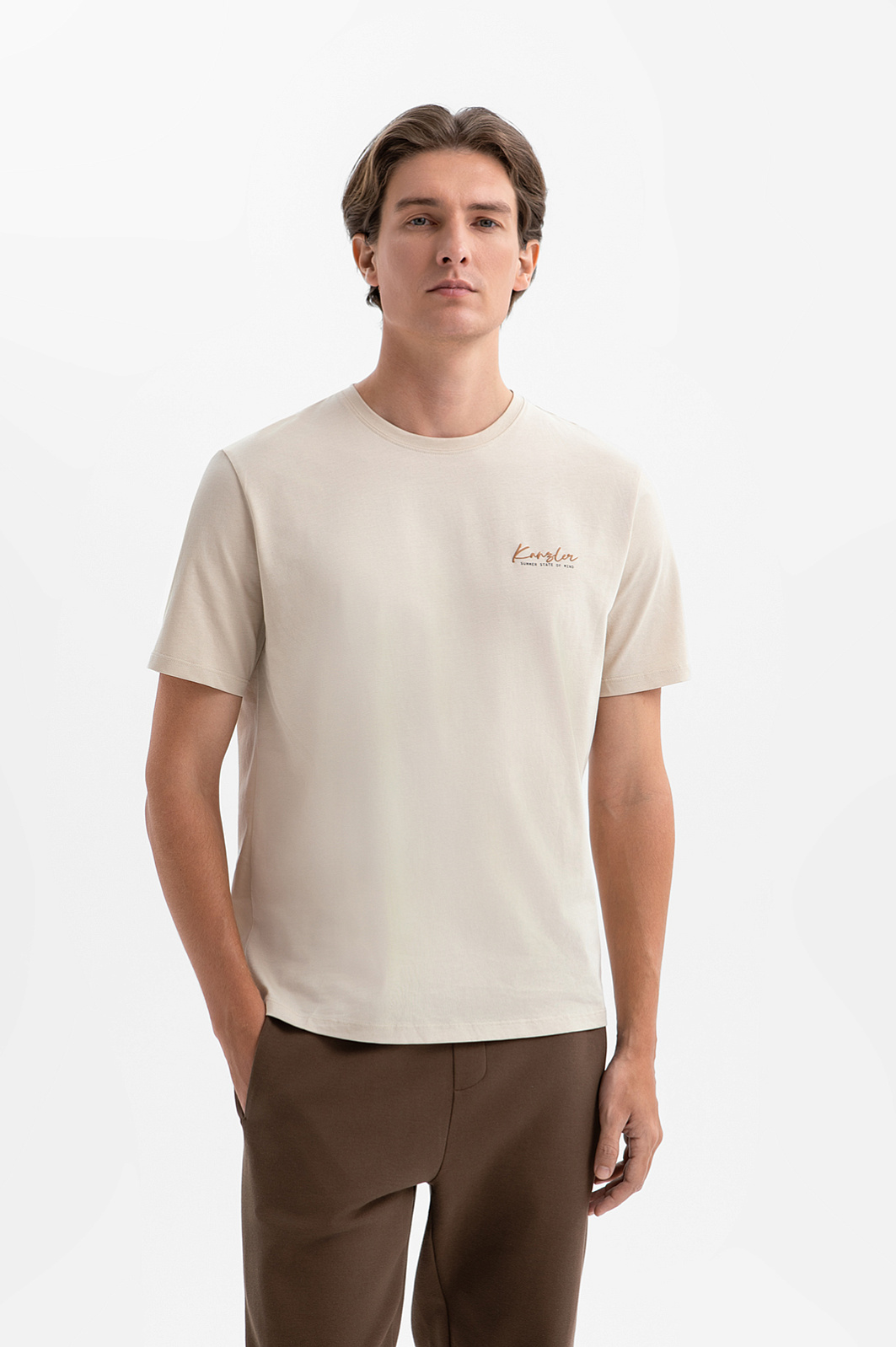 Футболка из хлопка с принтом на спине, цвет бежевый, цена 4 990 руб. - купить в интернет-магазине KANZLER