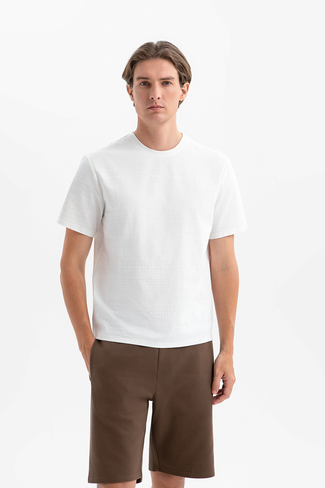 Белая футболка KANZLER с орнаментом — универсальная современная модель, в которой можно провести лето в городе или отправиться в поездку или путешествие — на поиски приключений и новых впечатлений. Едва заметный орнамент придаёт вещи урбанистический вид. Свободный крой не сковывает движений. Футболка хорошо держит форму, практически не мнётся и подходит для активного отдыха. Смесовая ткань на основе хлопка и полиэстера объединяет мягкость и гипоаллергенные свойства натуральных волокон с высокой прочностью и износоустойчивостью синтетических нитей.