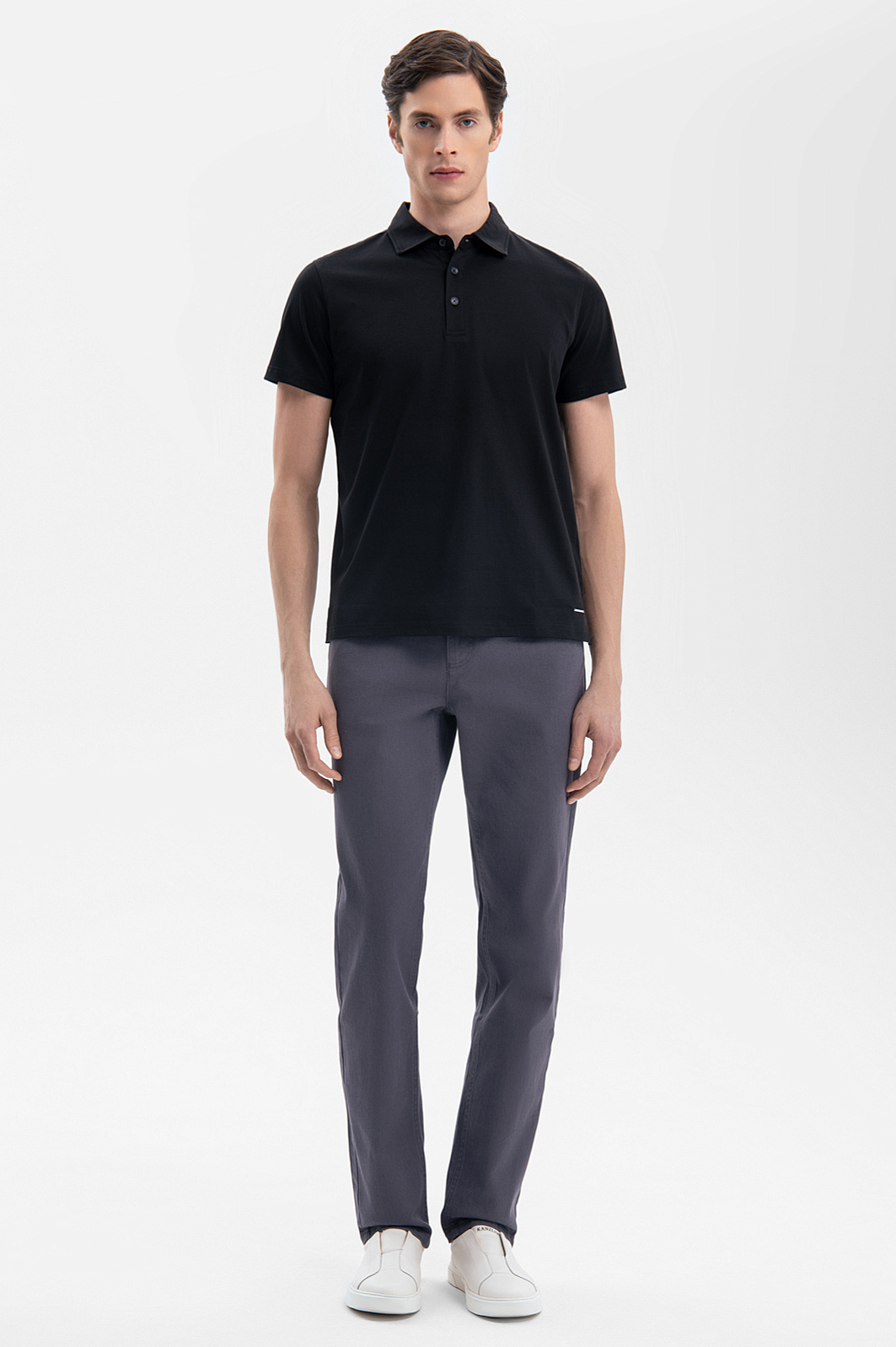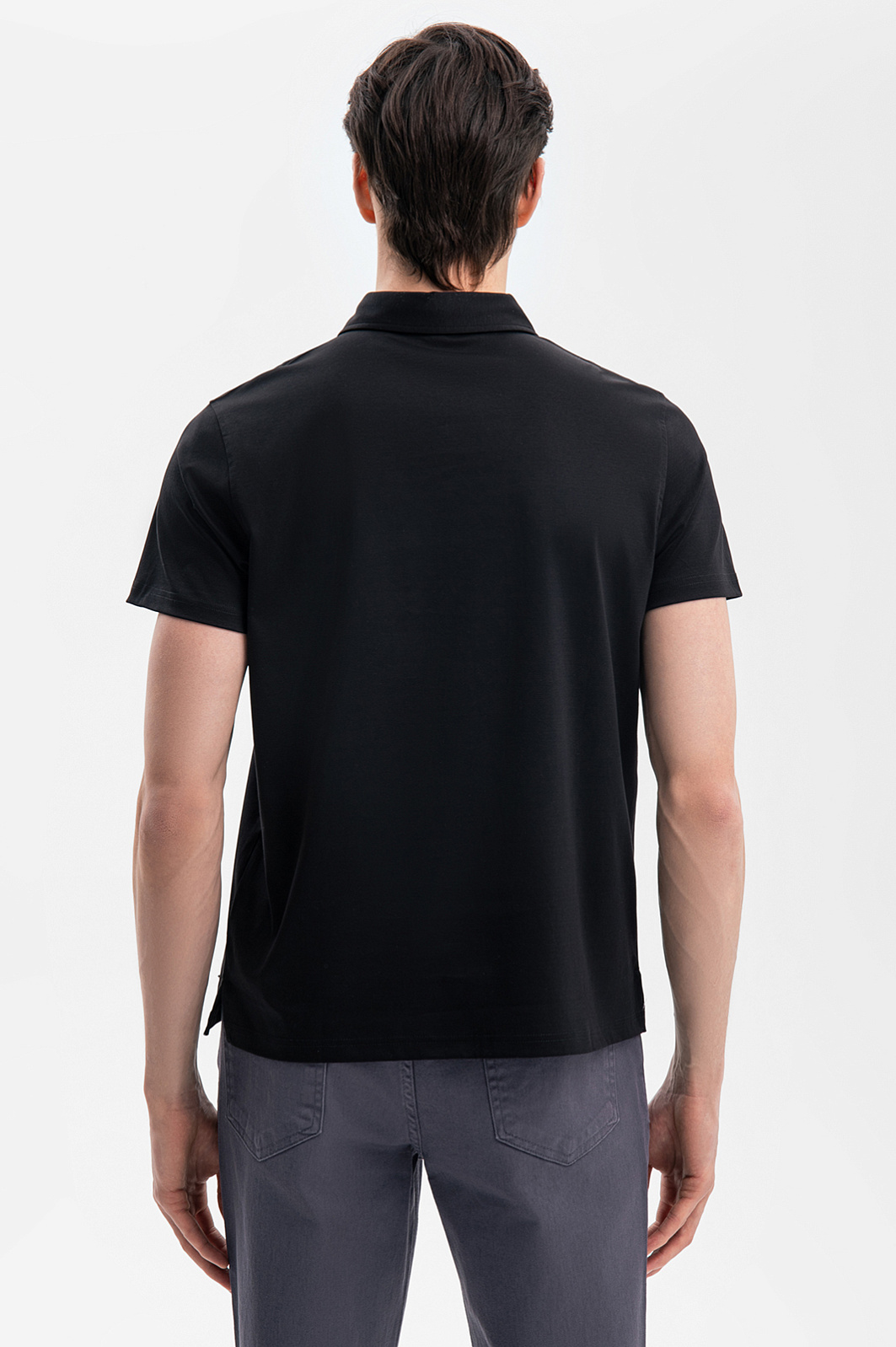 Черное поло KANZLER – стильная база в роскошном исполнении. Модель создали из 100% мерсеризованного хлопка – прочного, мягкого и дышащего материала с шелковистой фактурой. Технология мерсеризации делает ткань устойчивой к выцветанию, деформации и образованию катышков, сохраняя насыщенность цвета даже после многократных стирок. Гипоаллергенный материал подходит для чувствительно кожи. Приталенный крой обеспечивает аккуратную посадку и подчеркивает достоинства фигуры, не стесняя движений. Черное поло – универсальная и самодостаточная модель, которую легко сочетать с джинсами, брюками или классическими брюками. Параметры модели: рост 189, 91-78-95 Размер на модели: М