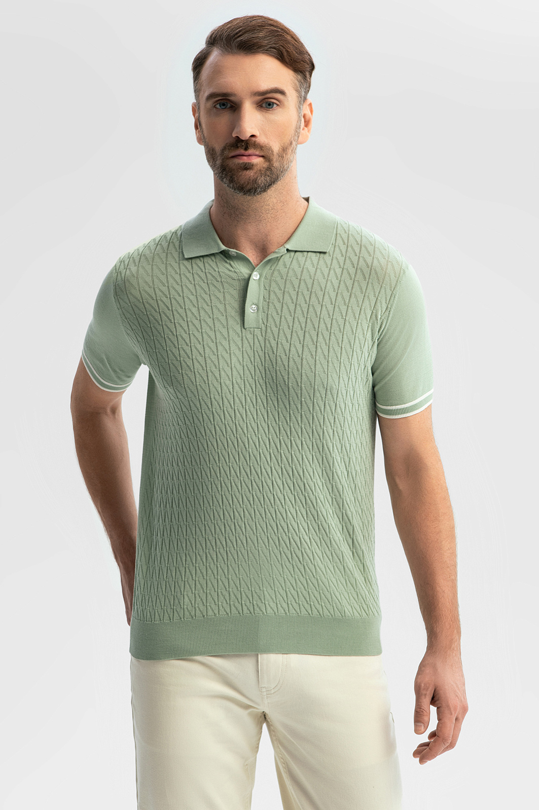 Поло KANZLER в благородном оливковом оттенке — симбиоз утонченного стиля и комфорта. Для создания модели выбрали премиальный хлопок Пима — уникальный материал, обладающий повышенной прочностью, легкостью и шелковистой фактурой. Мягкие гипоаллергенные волокна сохраняют цвет и форму на протяжении долгого времени — благодаря долговечности поло станет инвестицией в гардероб. Изысканный фактурный узор придает модели глубину и индивидуальность. Вертикально направленные полосы формируют стройный силуэт и визуально вытягивают фигуру. Дополните модель светлыми брюками для создания запоминающегося образа. Параметры модели: рост 189, 102-80-99 Размер на модели: M