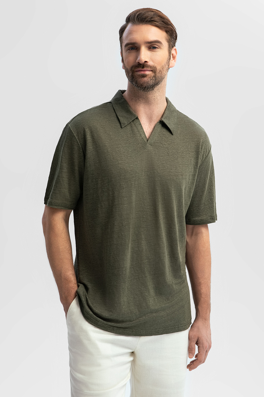 Поло изо льна, лимитированная коллекция, цвет хаки, цена 6 990 руб., код 269251 - купить в Воронеже в интернет-магазине KANZLER