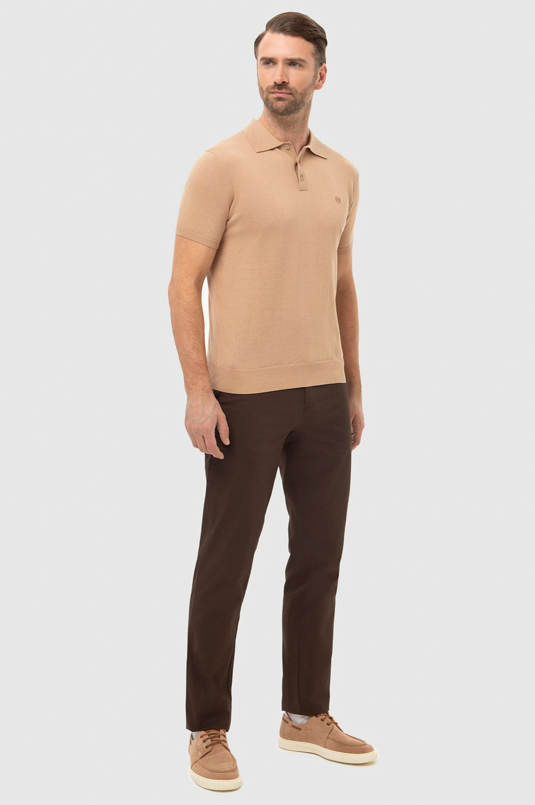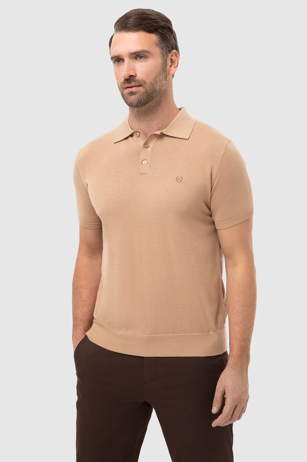 Поло из хлопка и шелка, цвет бежевый, цена 8 990 руб., код 267238 - купить в Воронеже в интернет-магазине KANZLER