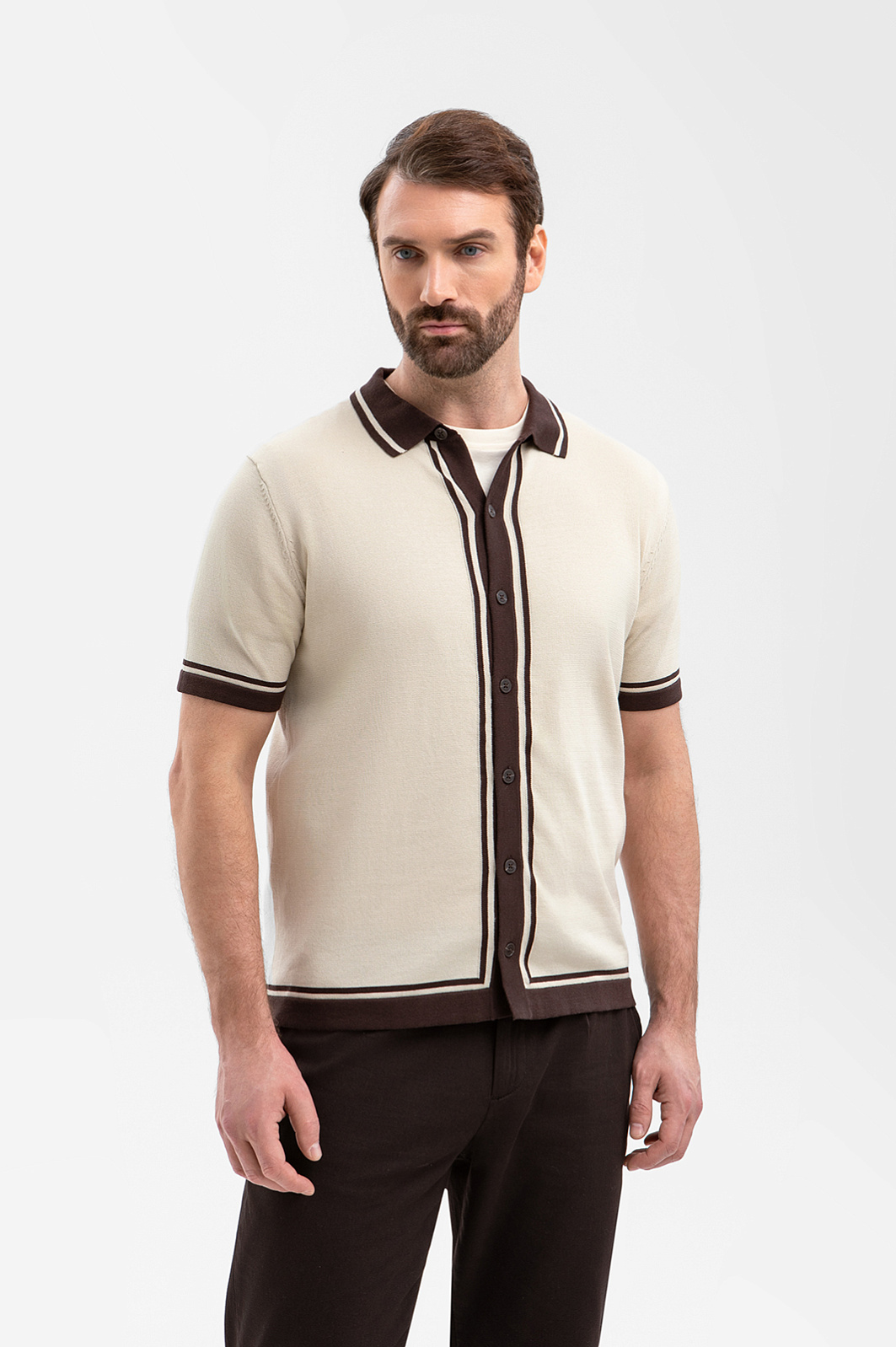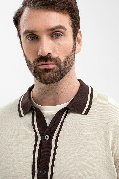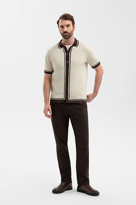 Роскошный кардиган KANZLER из ценного хлопка Пима сочетает выразительный дизайн, сдержанную элегантность и бескомпромиссный комфорт. Он создан для мужчин, которые умеют выглядеть безупречно в любой обстановке — на завтраке в отеле и неспешных прогулках по городу. Бежевый фон задаёт спокойное расслабленное настроение. Контрастные коричневые полосы на воротнике и по краям ассоциируются с натуральными материалами: кожей, деревом, кофе, и добавляют образу теплоты и изысканности. Дорогая пряжа произведена из хлопка Пима, который по праву считается элитным материалом. Его волокна значительно длиннее и тоньше, чем у обычного хлопка, благодаря чему ткань приобретает особую мягкость, исключительную прочность и способность сохранять безупречный внешний вид сезон за сезоном.