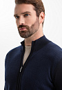 Кардиган KANZLER на молнии в синем оттенке воплощает сдержанную элегантность, комфорт и современный минимализм. Глубокий тёмно-синий оттенок легко вписывается как в деловой, так и в повседневный гардероб, создавая образ уверенного и стильного мужчины. Лаконичный дизайн подчёркнут трикотажными резинками, которые формируют аккуратный силуэт, добавляют удобства и сохраняют форму кардигана даже при активной носке. Функциональная молния дополнена небольшим язычком из белого металла, который служит деликатным акцентом. Кардиган выполнен из гладкого эластичного шерстяного трикотажа (100%), который обеспечивает мягкость и тепло и сохраняет безупречный внешний вид. Параметры модели: рост 189, 102-80-99 Размер на модели: M