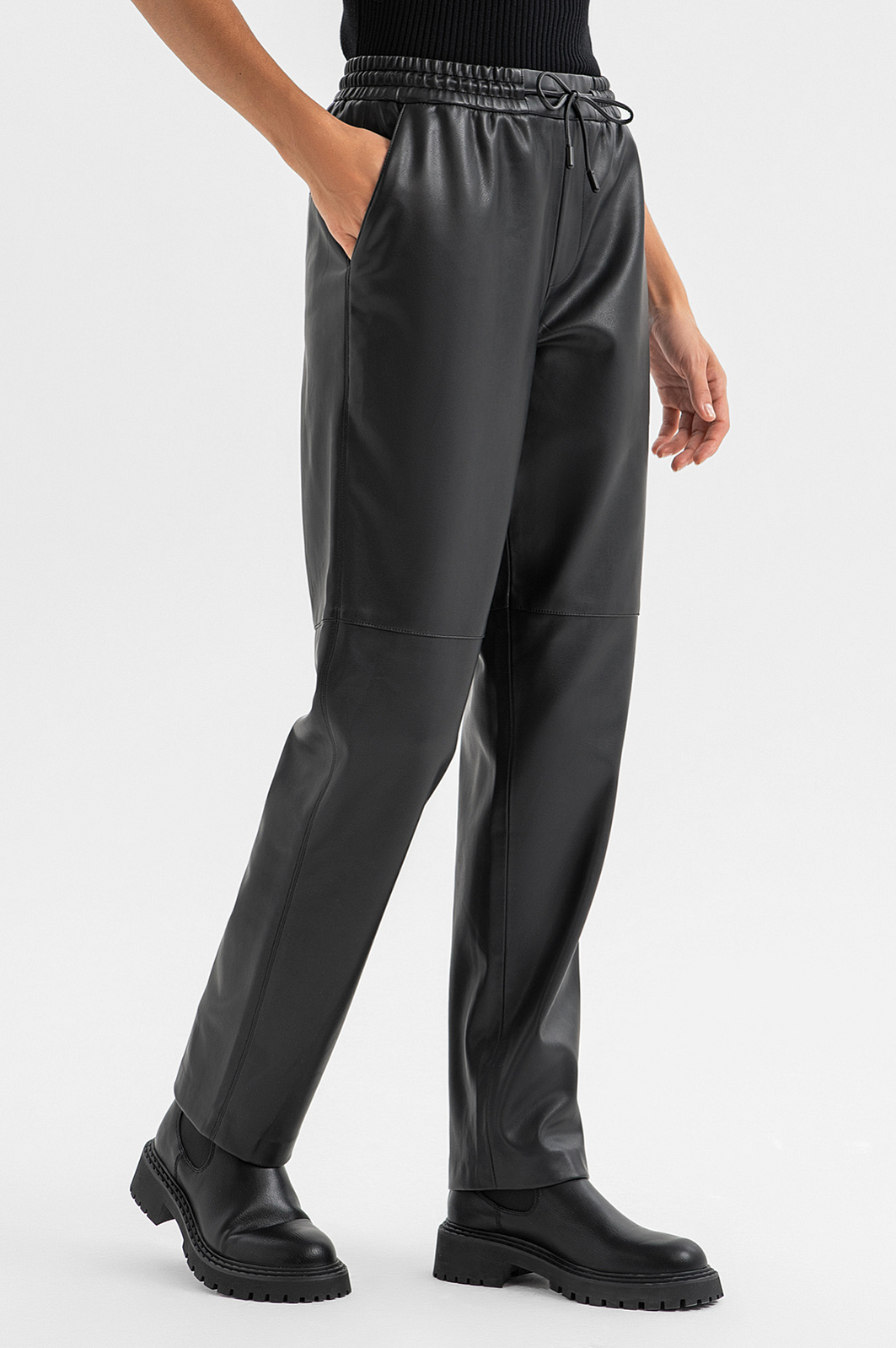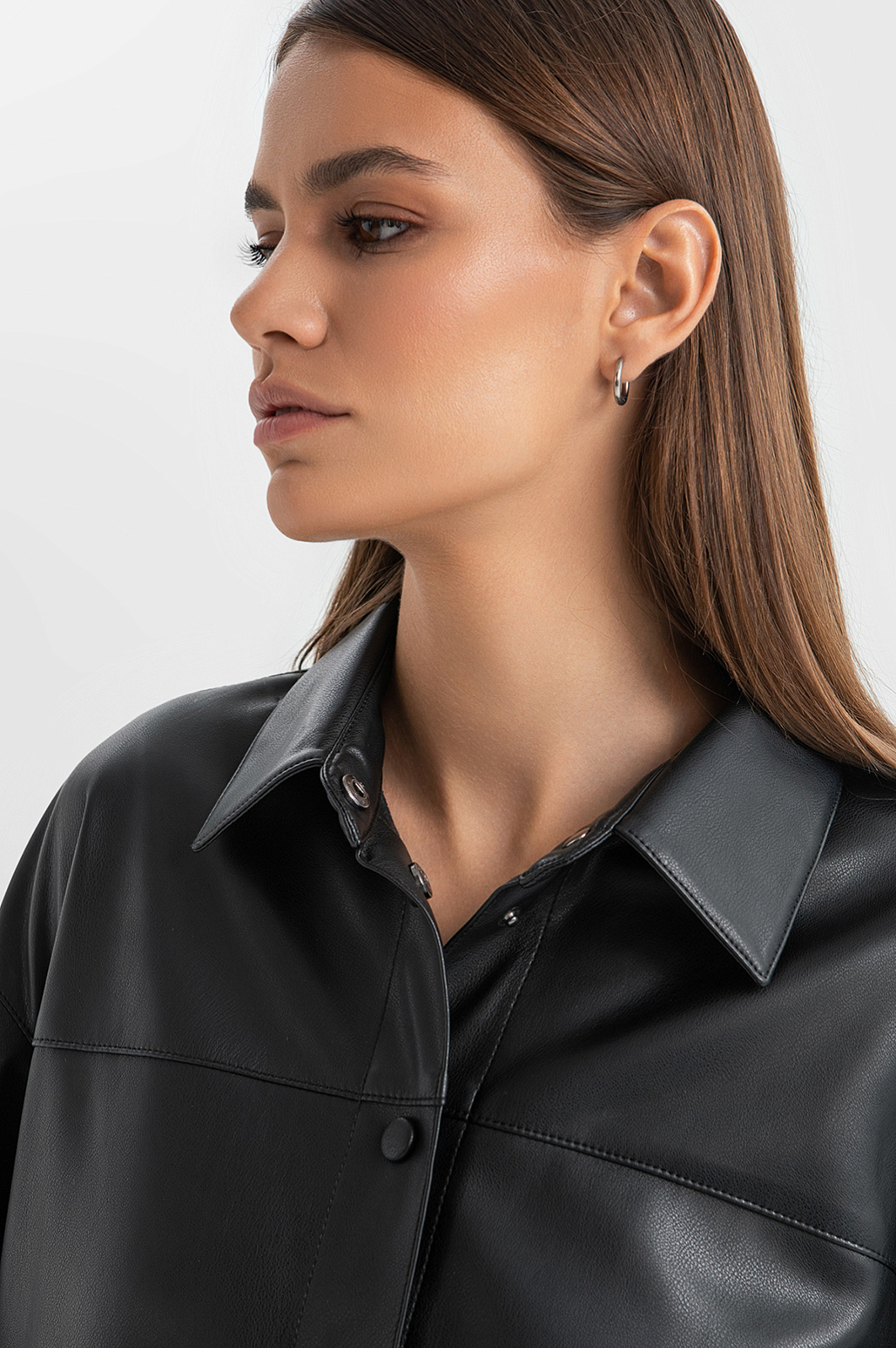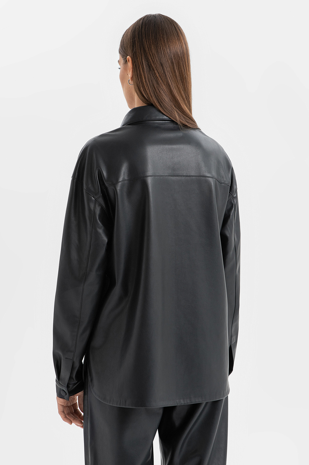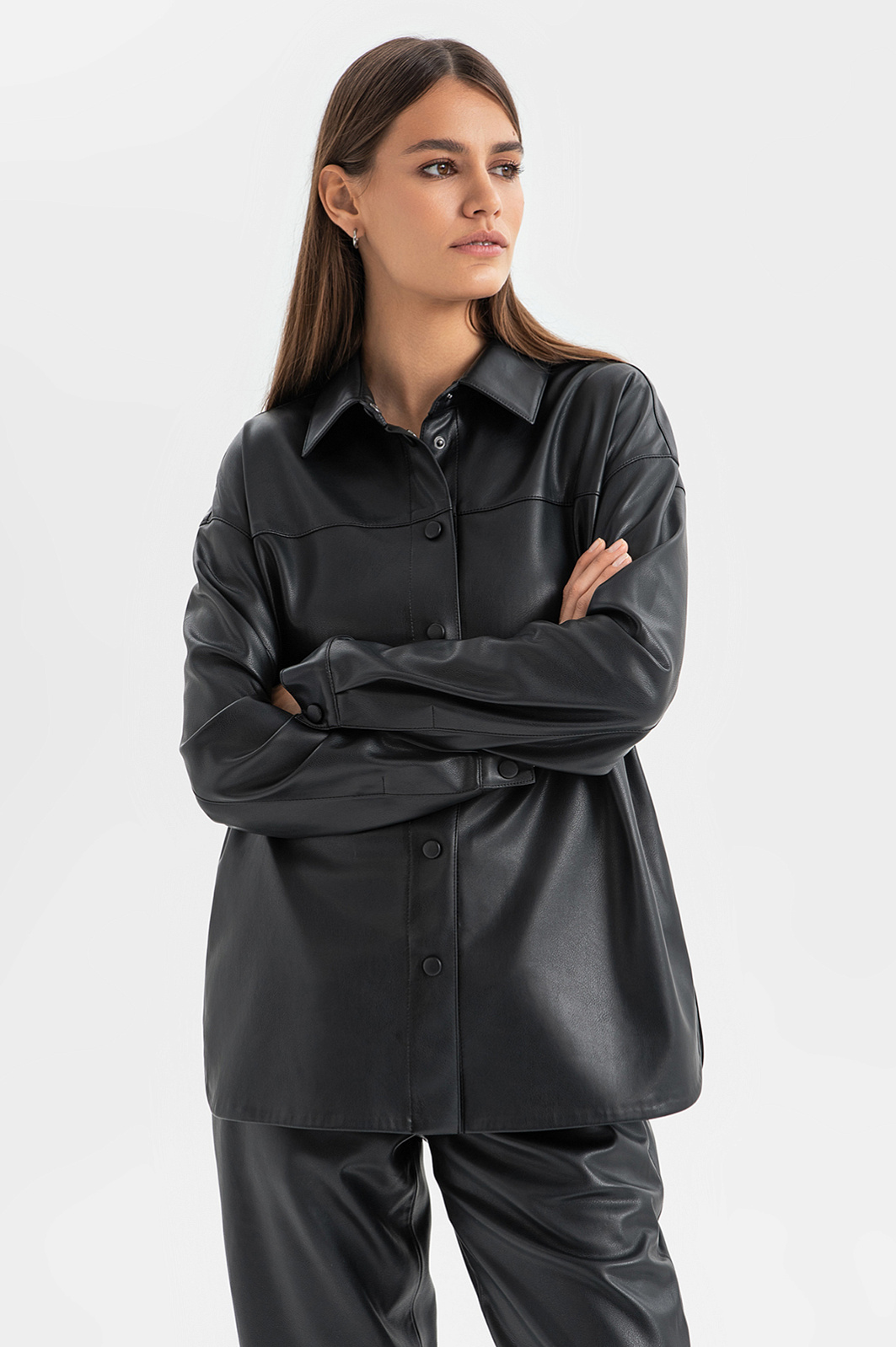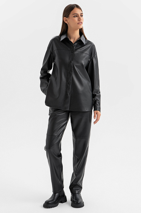 Комплект из матовой экокожи KANZLER станет незаменимым спутником в создании как стильных повседневных сочетаний, так и эффектных вечерних образов. Это идеальный баланс элегантности и дерзости. Свободная рубашка с матовой фактурой и удобными кнопками добавляет нотку расслабленного шика. Брюки с эластичной резинкой и кулиской на поясе подчеркивают достоинства фигуры и обеспечивают комфорт в течение дня. Прочный и долговечный материал приятен на ощупь и легок в уходе. Универсальный черный цвет позволяет легко комбинировать комплект с любыми элементами гардероба, экспериментируя и создавая многослойные образы. Наши стилисты предлагают дополнить рубашку и брюки лаконичным топом, обувью на высоком каблуке или массивными ботинками.