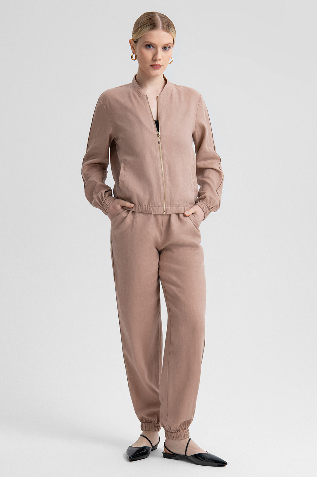 Бомбер изо льна, цвет пудровый, цена 12 990 руб. - купить в интернет-магазине KANZLER