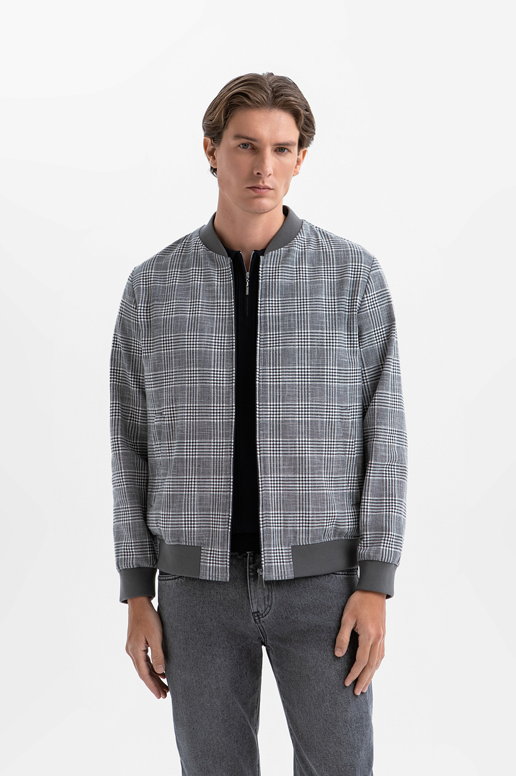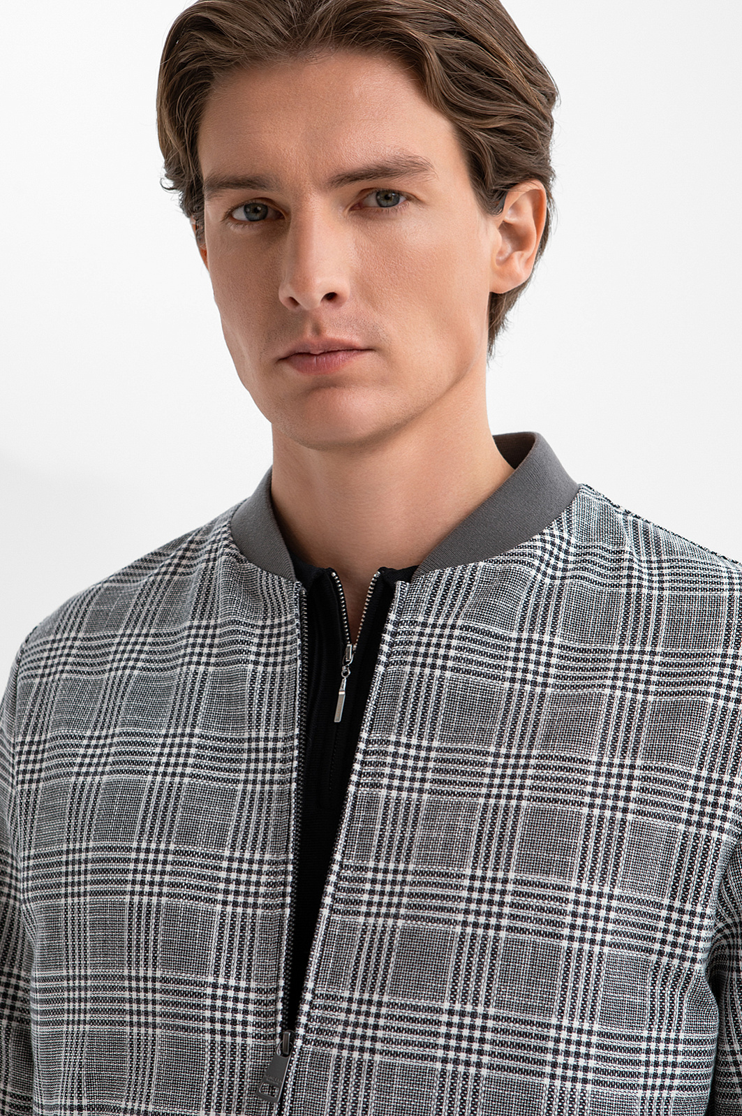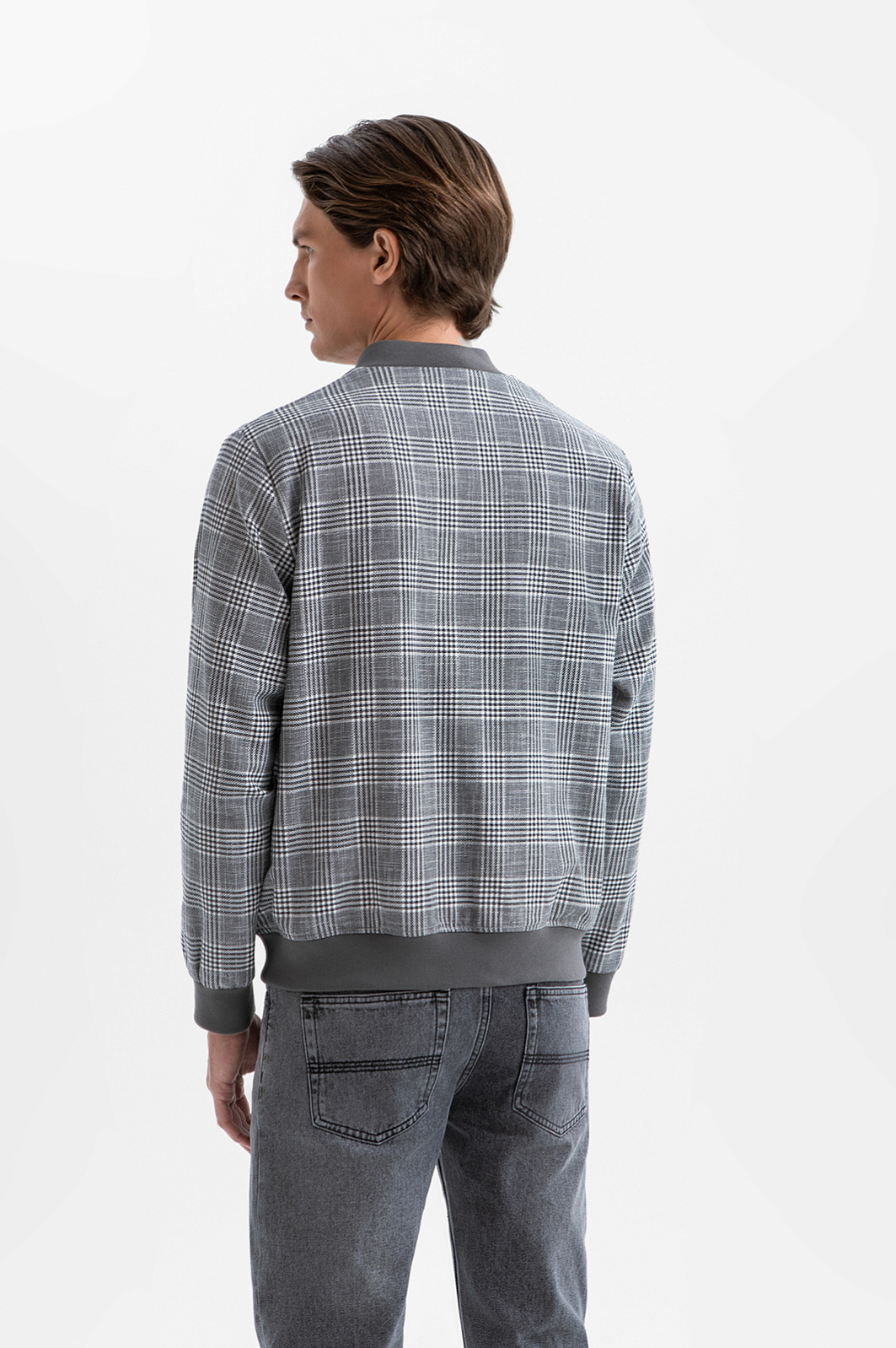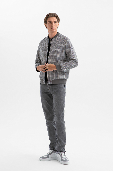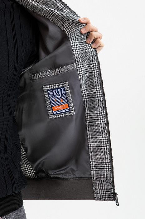 Бомбер в клетку из хлопка и льна, цвет серый, цена 24 990 руб., код 271044 - купить в Воронеже в интернет-магазине KANZLER