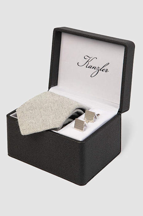 Подарочный набор (галстук + запонки), цвет серый, цена 4 990 руб., код 268130 - купить в Воронеже в интернет-магазине KANZLER
