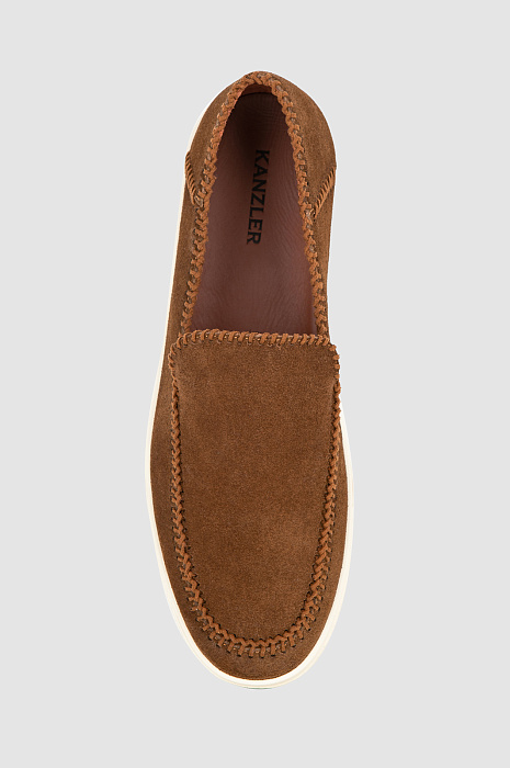 Коричневые лоферы KANZLER из замши с белой подошвой — лёгкая и удобная классическая обувь в современном исполнении. Лаконичная форма сочетается с оригинальной отделкой — декоративным краевым швом, который подчёркивает структуру обуви и привлекает внимание к деталям. Подкладка и стелька, выполненные из гладкой натуральной кожи, служат комфорту и избавляют ноги от усталости при длительной ходьбе. Утолщенная резиновая подошва амортизирует шаг.