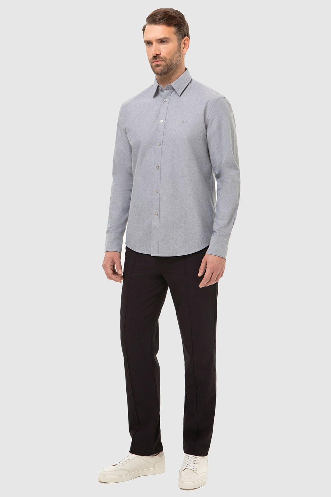 Универсальная практичная рубашка KANZLER из чистого хлопка, украшенная фирменной вышивкой-монограммой, отличается спокойным серым оттенком, элегантностью и комфортом. Неформальная модель идеально сочетается с одеждой естественных оттенков и подходит для городской жизни и отдыха. Удобный крой не стесняет движений. Плотная ткань безупречного качества из 100-процентного хлопка бережет тело от жары и прохлады. Благодаря рельефной структуре материала (Oxford) рубашка выглядит очень уютной и притягательной.