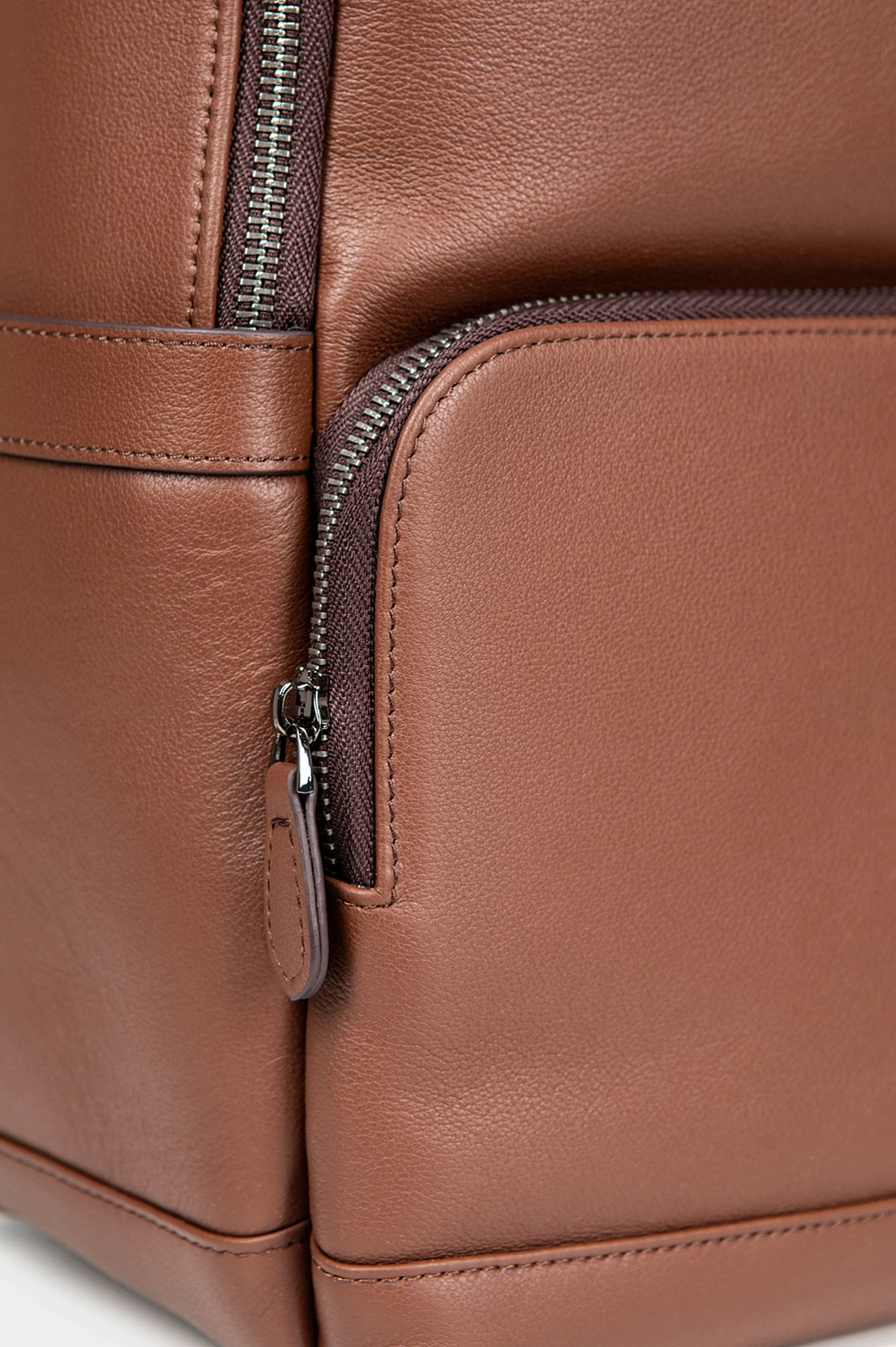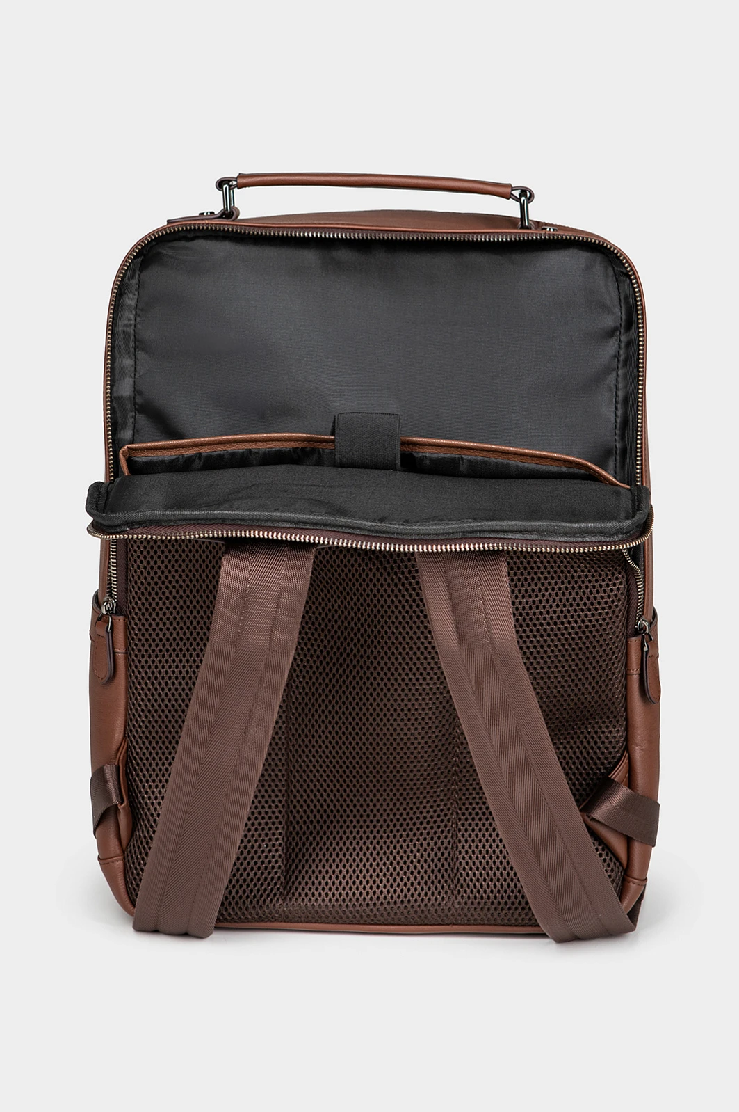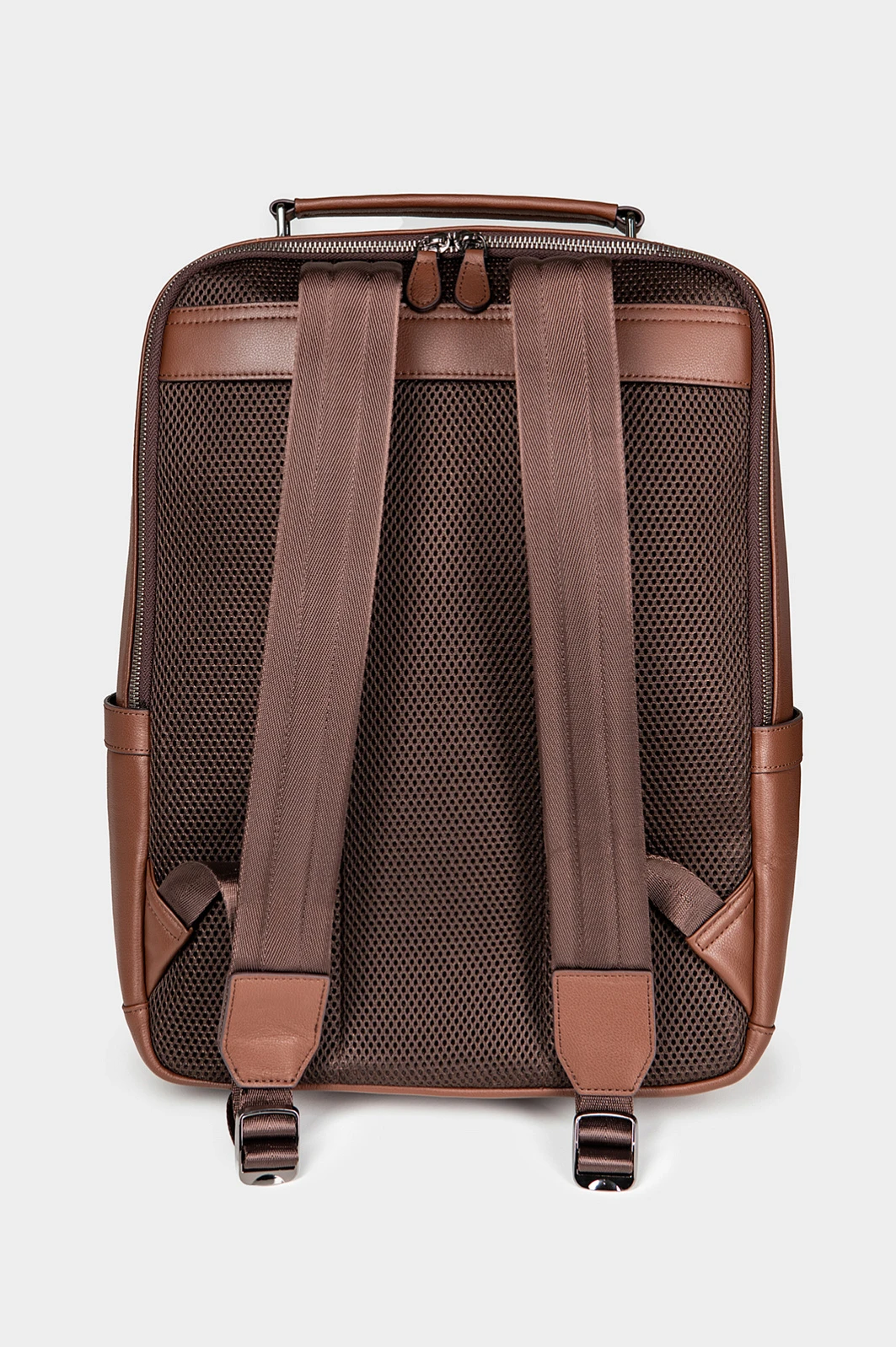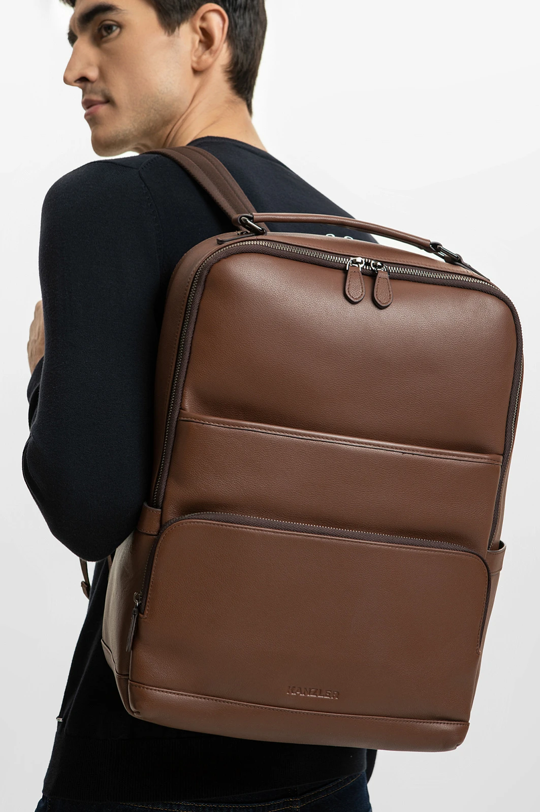 Городской рюкзак KANZLER из натуральной кожи теплого шоколадного оттенка — стильный функциональный спутник на каждый день, сочетающий спокойный современный дизайн и комфорт. Универсальный аксессуар подойдет к любому стилю одежды — деловому, повседневному и спортивному. Размера 30х40х15 см достаточно, чтобы разместить в рюкзаке ноутбук, документы и личные вещи. Практичный карман на молнии, расположенный спереди, позволяет быстро достать ключи, пропуск или проездной, не открывая основное отделение. Сетчатая спинка обеспечивает вентиляцию и комфорт даже при длительном ношении, особенно в тёплую погоду.