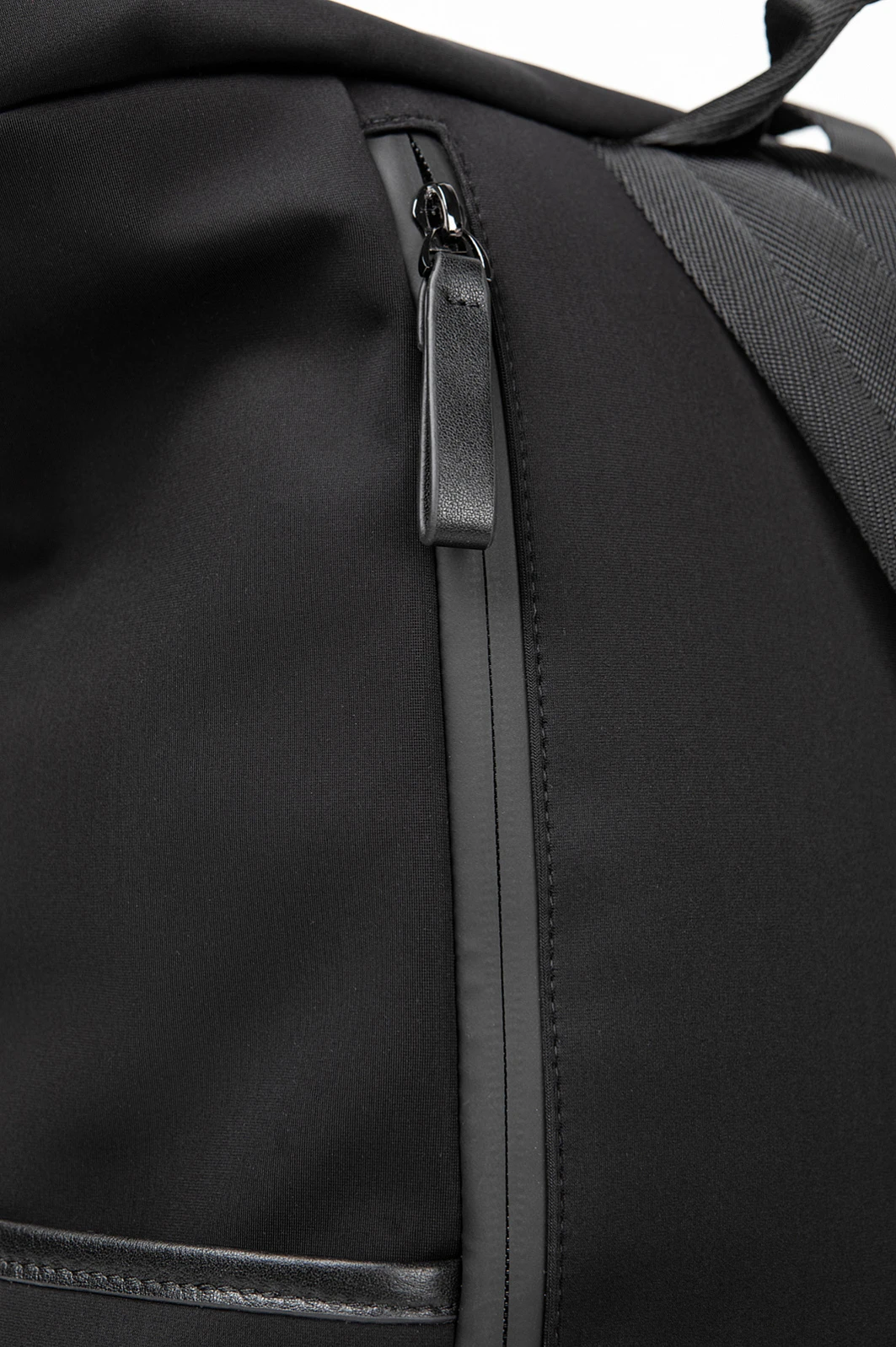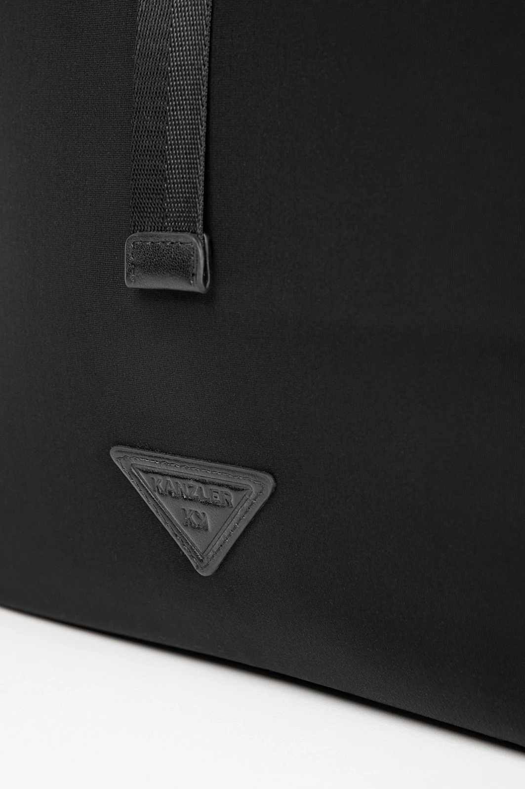 Легкий черный рюкзак KANZLER из нейлона с кожаной отделкой в духе эстетики минимализма и хайтек, навеянной эстетикой Сеула — города передовых технологий и культурного разнообразия. Застежка-молния и дополнительный ремень с пряжкой усиливают защиту содержимого и придают рюкзаку урбанистический вид. Внутри — скрытые отделения для гаджетов, кабелей, документов, снаружи — плоские аккуратные карманы. С помощью ручки и широких регулируемых лямок рюкзак можно носить в руке или на спине.