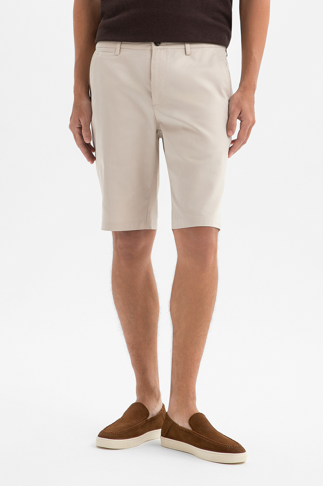 Светло-бежевые бермуды KANZLER из хлопка и тенсела — вещь первой необходимости для тёплых дней. В зависимости от планов, их можно дополнить футболкой, поло или рубашкой свободного кроя. Силуэт с классической длиной до колена выглядит комплементарно и стильно на фигуре любого типа. Смесовая ткань достойно выдерживает испытание временем и выглядит аккуратно сезон за сезоном. В составе — натуральный гипоаллергенный хлопок с добавлением тенсела. Такое сочетание делает материал дышащим, лёгким, пластичным и прочным.