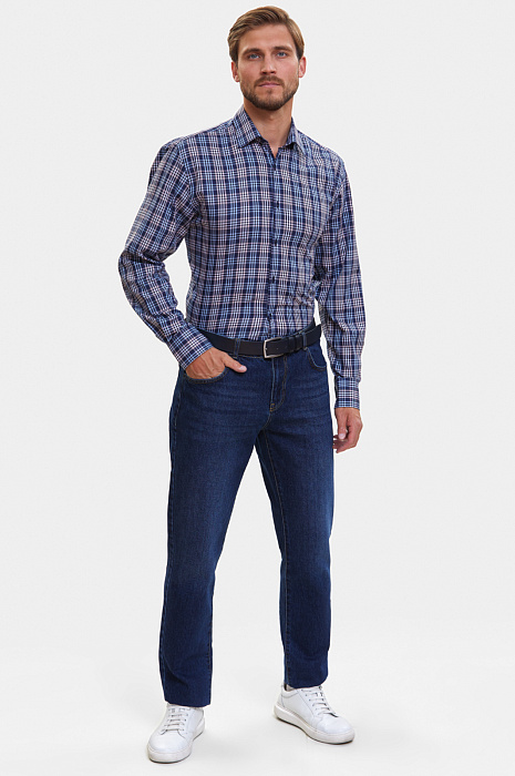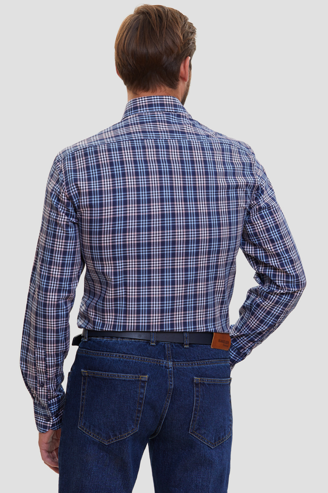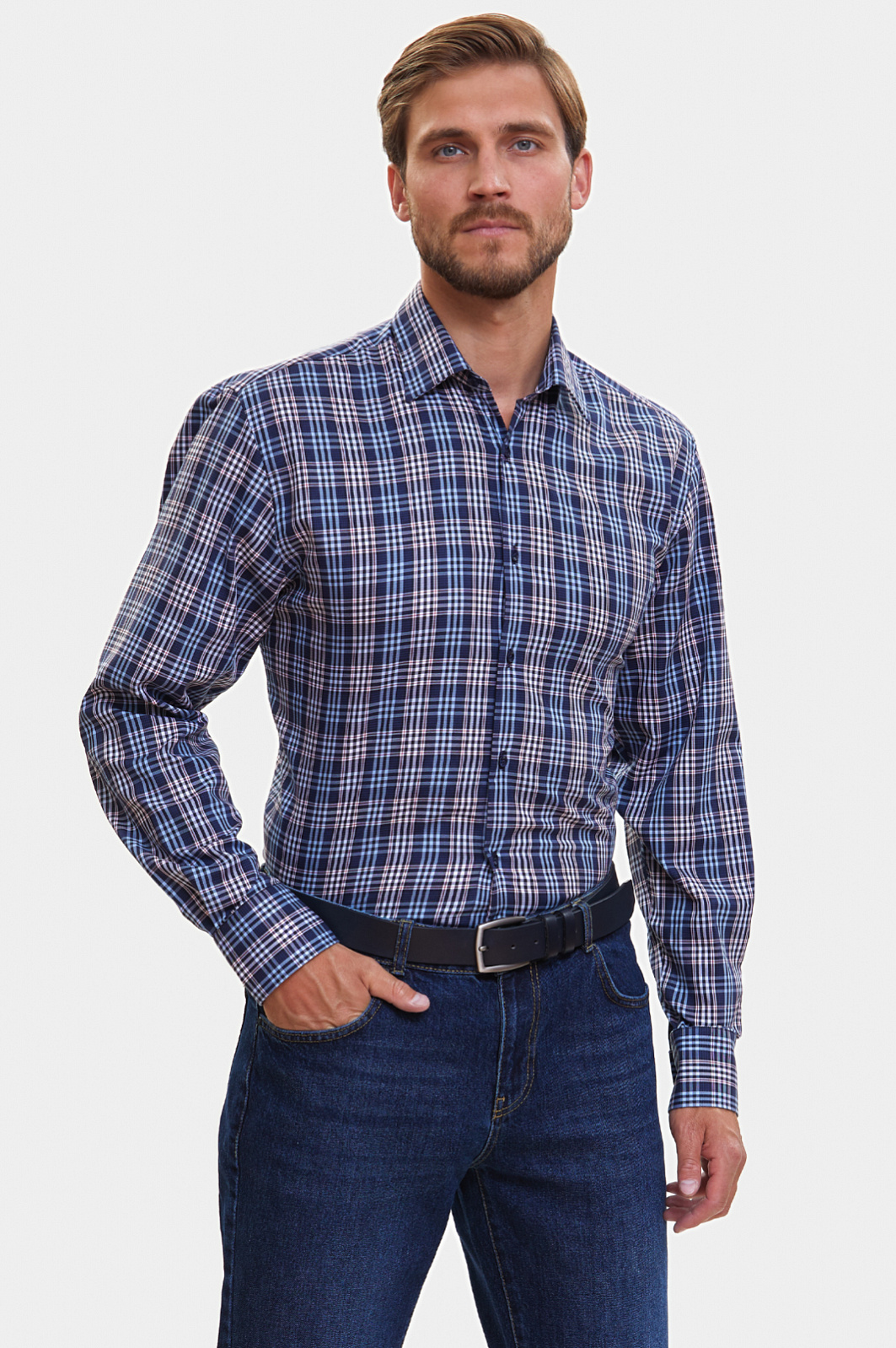 Сорочка свободного прилегания из хлопка в клетку, цвет синий, цена 4 990 руб., код 266501 - купить в Воронеже в интернет-магазине KANZLER