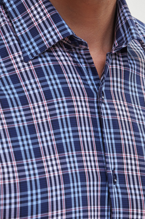 Синяя сорочка KANZLER из хлопка в клетку — базовая вещь для создания образов в стилях кежуал, умный кежуал и спорт. Строгий, чуть приталенный силуэт подчеркивает достоинства спортивной фигуры. Синие, голубые и красные линии образуют стильный клетчатый узор, который великолепно смотрится с классическими джинсами KANZLER. Вместе с кедами или кроссовками образуется гармоничный городской аутфит. Гладкая матовая рубашечная ткань выглядит дорого и благородно. Мягкий, тактильно приятный материал из 100-процентного хлопка прослужит не один сезон. В сорочке не жарко и не холодно — легкая дышащая структура хорошо пропускает воздух, сохраняя комфортную для тела температуру. Параметры модели: рост 187, 100-81-97 Размер на модели: 40