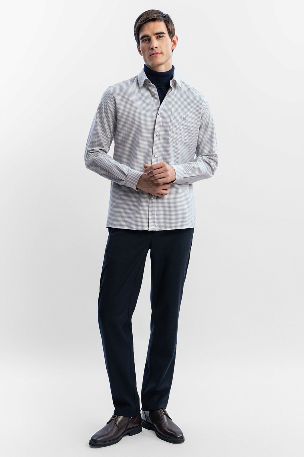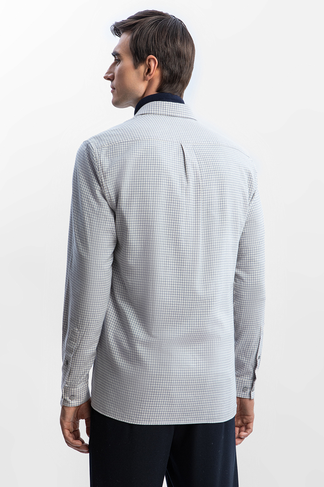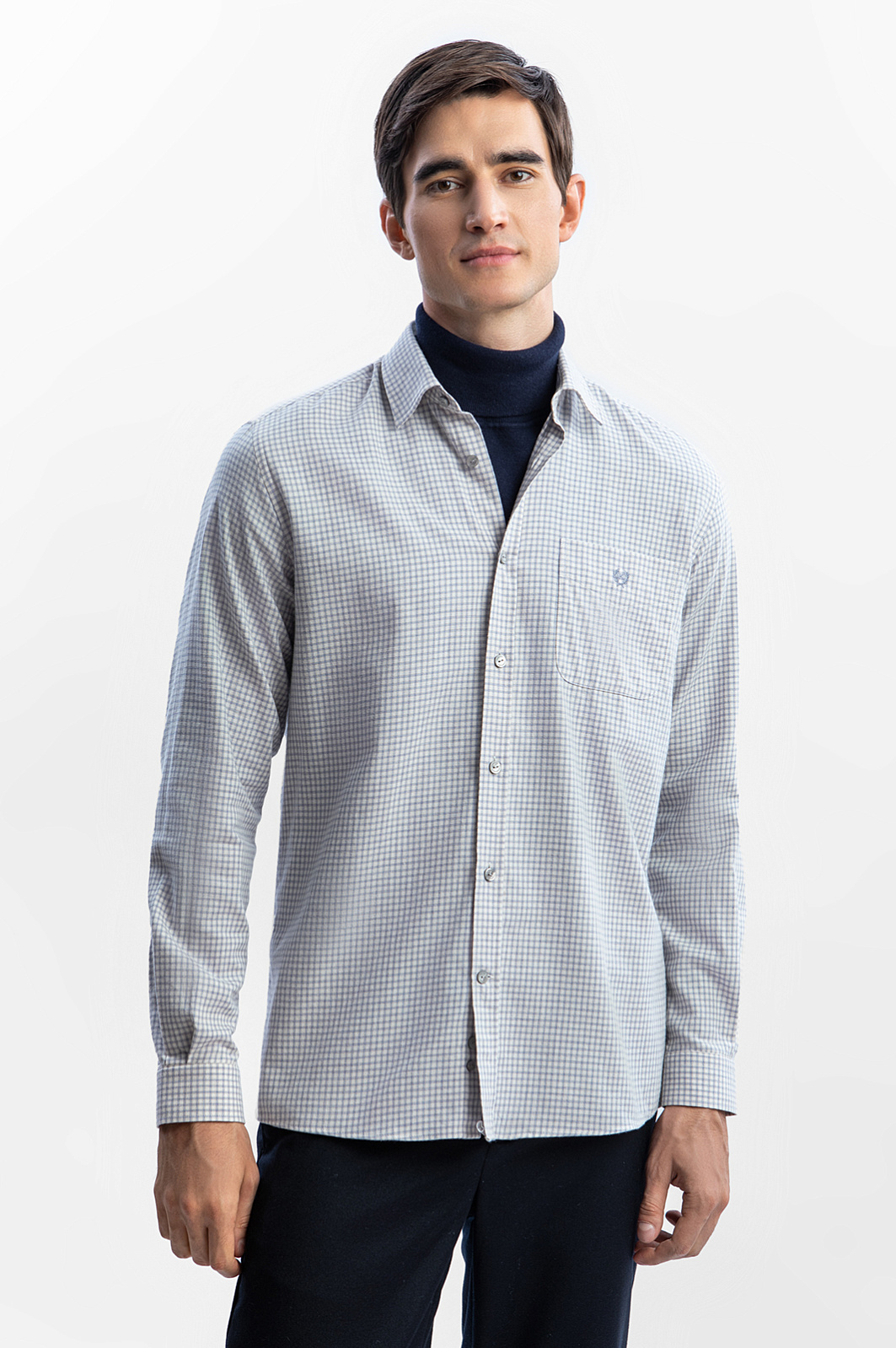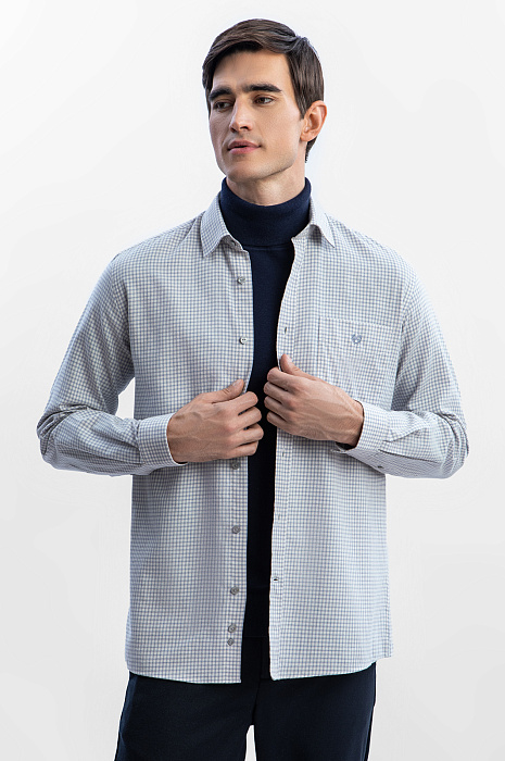 Фланелевая рубашка KANZLER в голубую клетку из хлопка и шерсти из лимитированной коллекции, которая объединяет дизайнерские вещи из дорогих материалов, представляет собой гармоничное сочетание уюта и современного стиля. Она отлично сочетается с джинсами и неформальными брюками из плотного хлопка и шерсти. Приятная текстура фланели и универсальный освежающий узор легко вписываются в городские и «пятничные» офисные образы. Лаконичный накладной нагрудный карман с фирменной вышивкой подчеркивает архитектуру рубашки и придает современный вид. Добавление шерсти (10%) делает вещь тёплой, мягкой и особенно комфортной в прохладную погоду. Легкий гипоаллергенный хлопок отвечает за воздухопроницаемость и приятные тактильные ощущения.