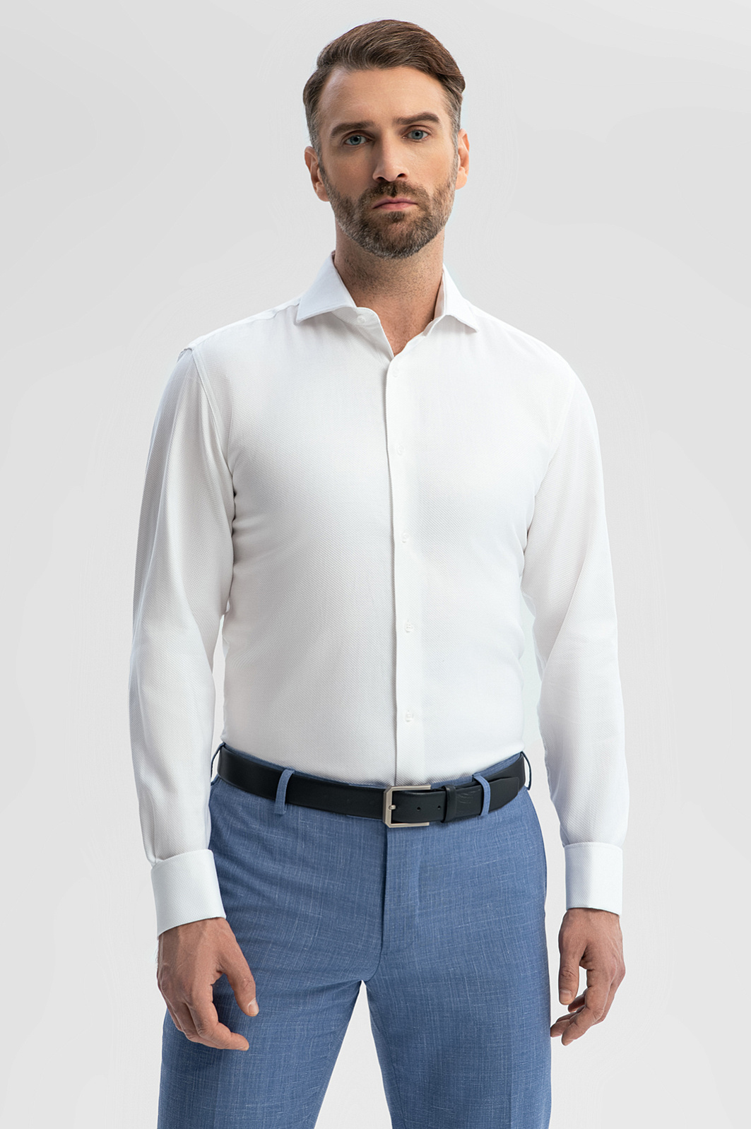 Белоснежная сорочка KANZLER выполнена из австрийской ткани Getzner, известной своей исключительной мягкостью и прочностью. Материал из 100% хлопка прошел специальную обработку, обеспечивающую защиту от пятен и легкую очистку. Классический крой создает аккуратную посадку и комплементарно смотрится на разных типах фигуры. Практичная модель станет основой элегантных образов для самых разных случаев: деловые встречи, официальные мероприятия или офисные будни. Параметры модели: рост 189, 102-80-99 Размер на модели: 40