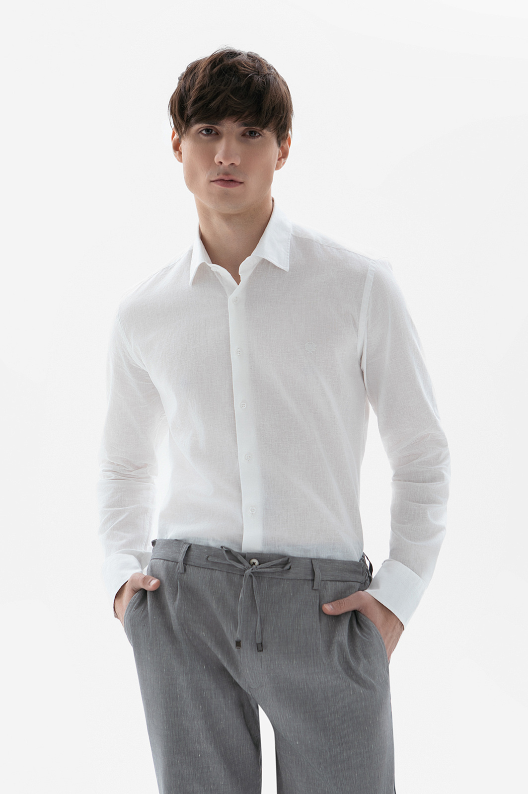 Сорочка изо льна и хлопка Carlo Bassetti (Италия), цвет белый, цена 8 990 руб., код 271579 - купить в Воронеже в интернет-магазине KANZLER
