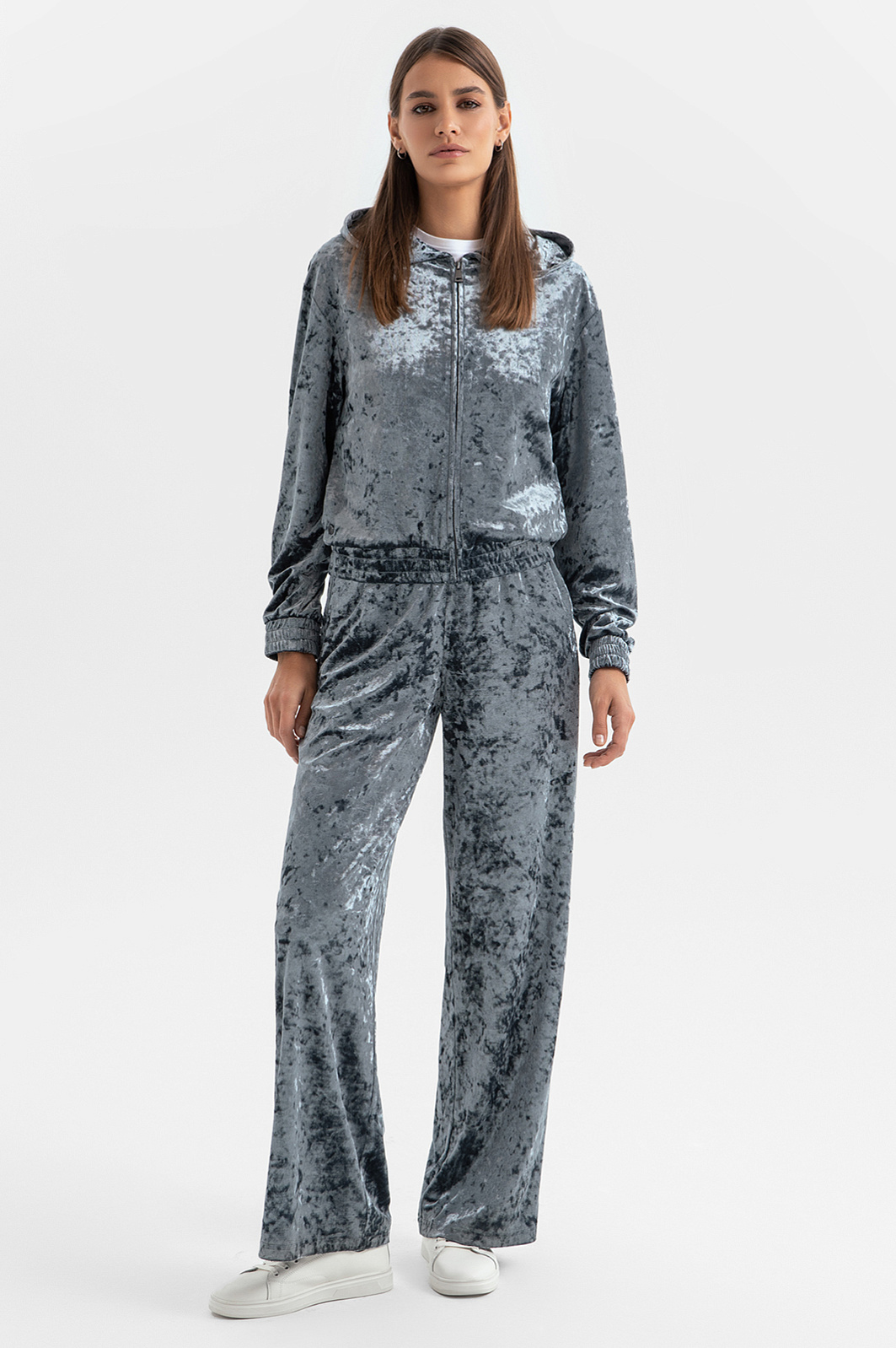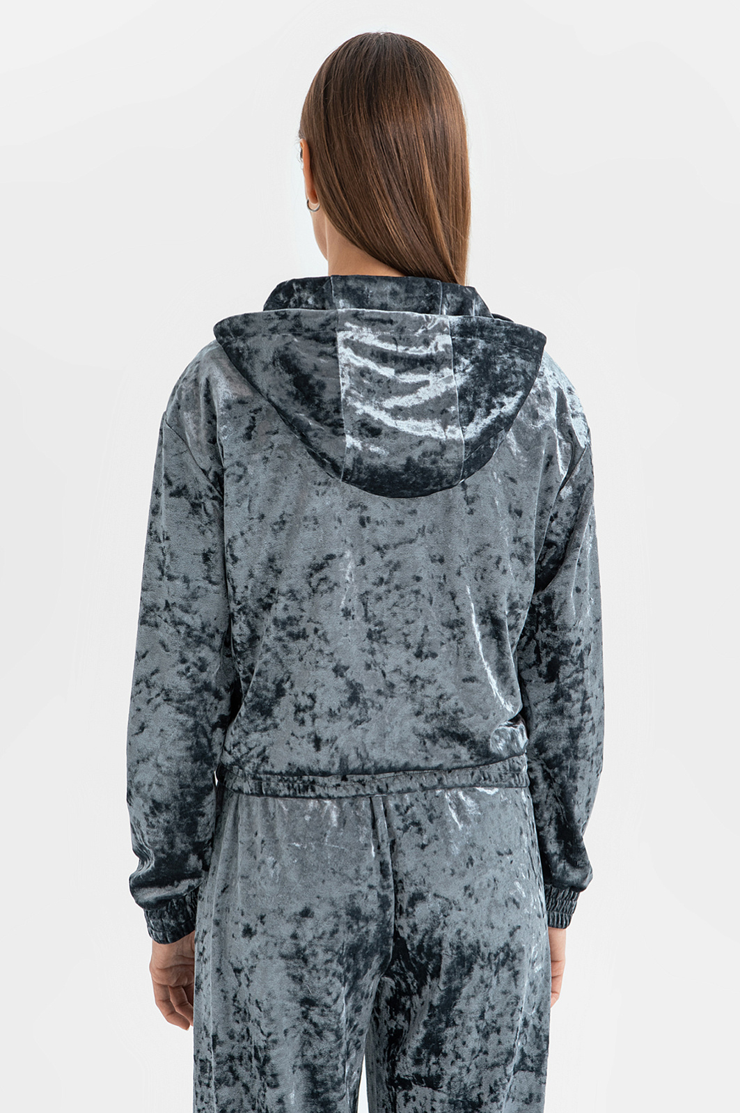 Женский костюм KANZLER из бархата — воплощение премиального комфорта. Толстовка с капюшоном и яркой мерцающей фактурой не только выглядит изысканно, но и практична для повседневной носки. Резинки на рукавах и вдоль края защитят от ветра в прохладные дни. Серые бархатные джоггеры дополняют образ, подчеркивая его утонченность. Эластичный пояс и свободный крой обеспечивают удобство и свободу движений. Комплект идеально подойдет для прогулок, отдыха за городом или даже вечеринки. Он легко трансформируется: носите толстовку и брюки вместе или по отдельности, комбинируя с другими элементами гардероба — футболками, свитшотами, джинсами.
