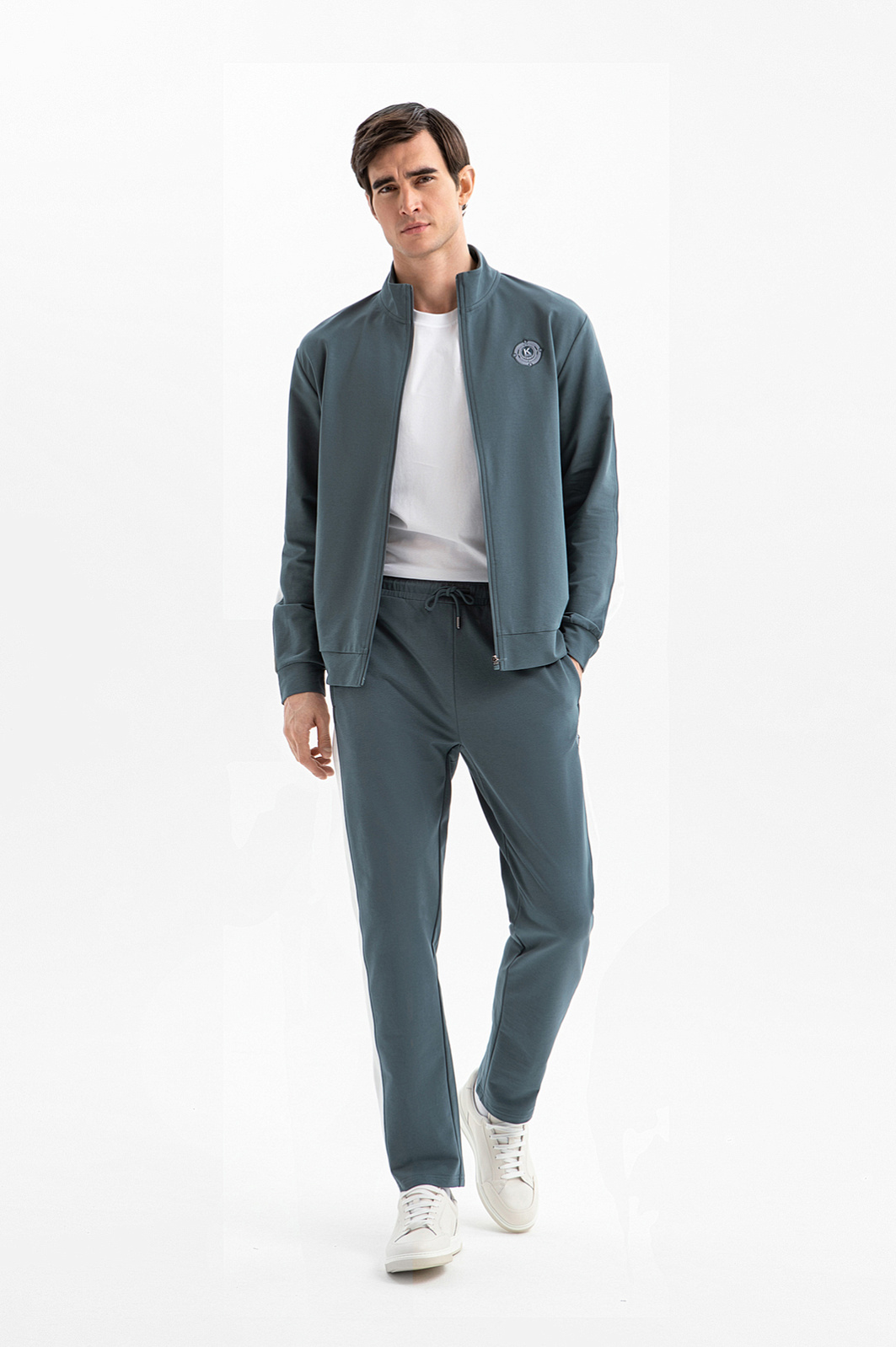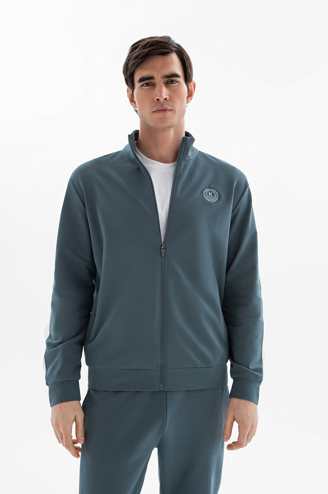 Толстовка KANZLER на молнии свежего хвойно-зелёного оттенка, украшенная фирменной эмблемой на груди, — универсальная модель на каждый день. В сочетании с джинсами получится образ в духе современной уличной моды, а со спортивными брюками KANZLER — удобная экипировка для лёгких тренировок и активного отдыха. Лаконичный дизайн выстроен на контрасте основной части и белых вставок на рукавах и спинке. Материал — плотный высококачественный трикотаж, который мягко облегает тело, не сковывая движений. Он создан из гиппоаллергенного хлопка с добавлением полиэстера и спандекса. Сочетание натуральных волокон и синтетических нитей делает ткань воздухопроницаемой, тактильно приятной, прочной и эластичной.
