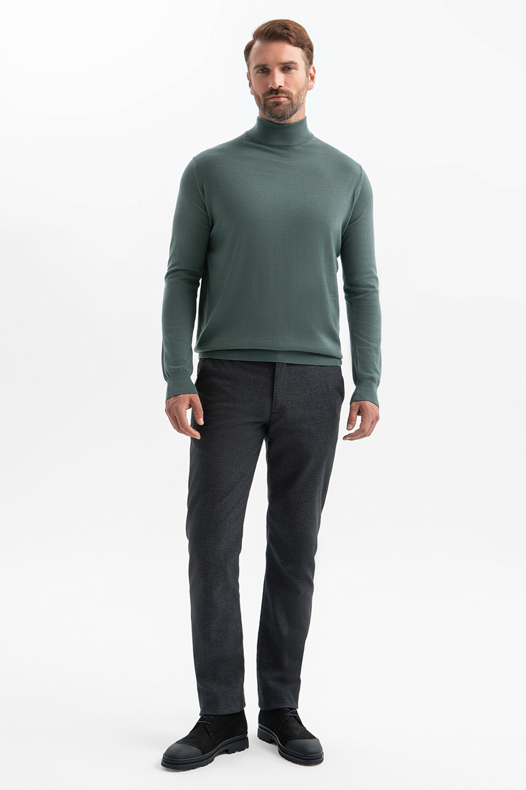 Серо-зеленая водолазка KANZLER из мягкого гладкого шерстяного трикотажа — универсальная вещь для офиса с нестрогим дресс-кодом, путешествий и отдыха. Комбинируя с джинсами, слаксами и вельветовыми брюками можно составить небанальный образ в стиле умный кежуал. В качестве верхнего слоя водолазка подчеркнет достоинства фигуры, а в сочетании с кардиганом или пиджаком — утеплит и добавит образу мягкости. Гладкий материал держит форму, не образовывая складок. Благородная шерстяная ткань удерживает естественное тепло тела, защищая от перепадов температур. Параметры модели: рост 189, 102-80-99 Размер на модели: M