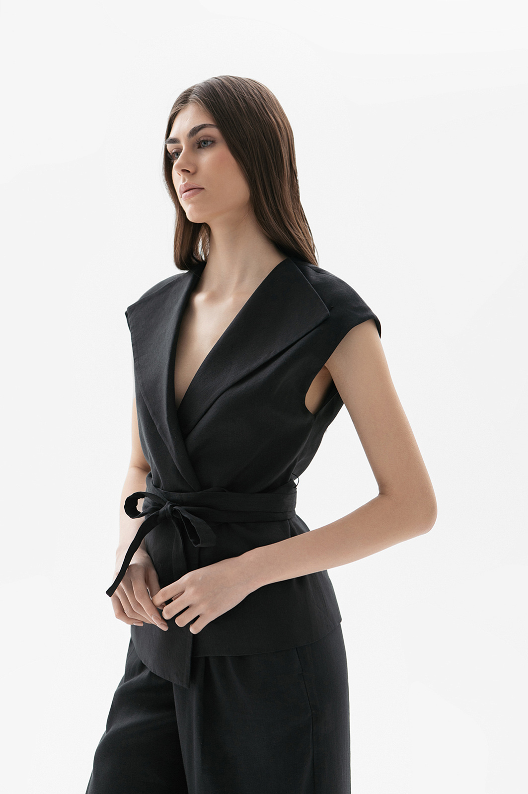 Жилет изо льна и вискозы, цвет черный, цена 12 990 руб. - купить в интернет-магазине KANZLER